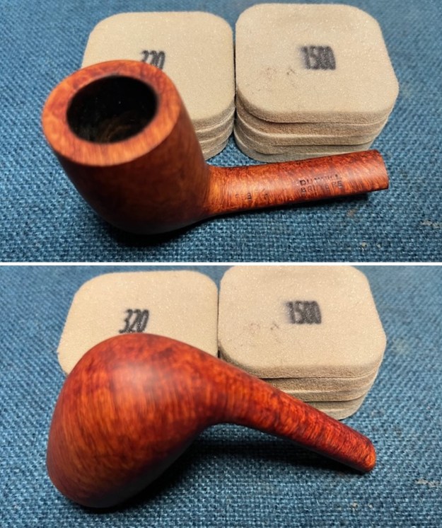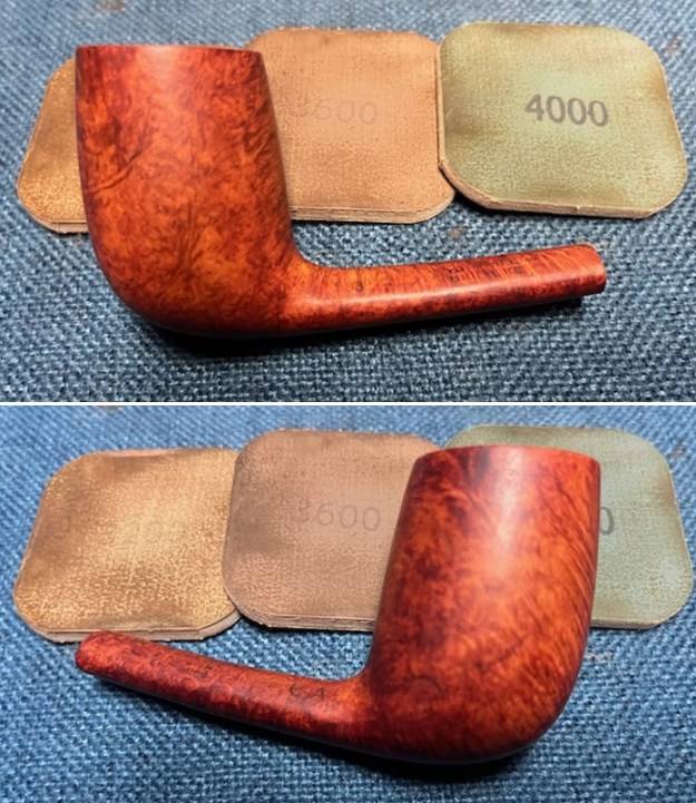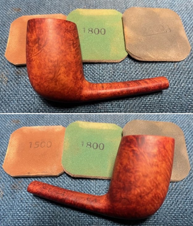 I started my work on the pipe by addressing the darkening to the rim top and sanding the bowl and shank. I used 320-3500 grit 2×2 inch sanding pads to remove the darkening on the rim top and the inner edge as well as clean up the bowl. It looked much better once finished.