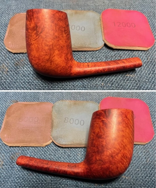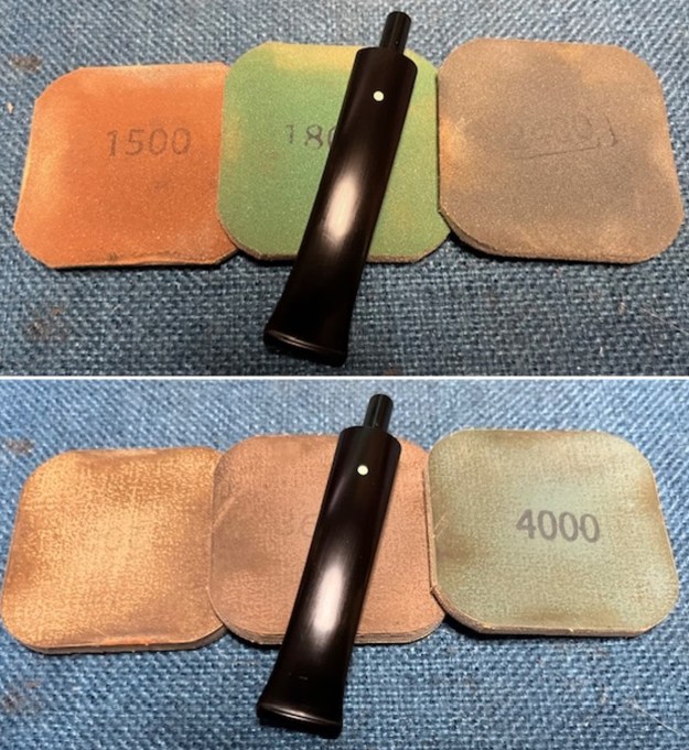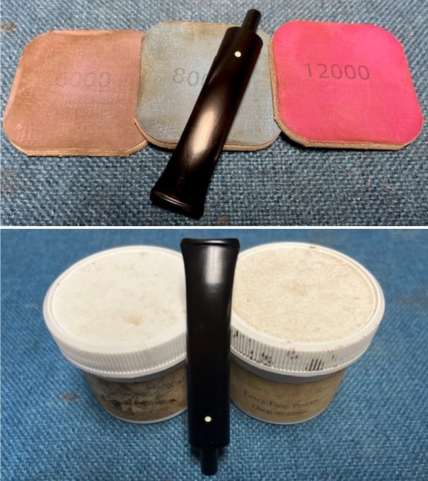 I polished the stem with micromesh sanding pads – dry sanding with 1500-12000 grit pads – the stem began to take on a shine. I wiped the stem down after each sanding pad with Obsidian Oil. I finished the stem with Before & After Fine and Extra Fine Polish. I buffed the stem with a soft cloth to raise the shine.