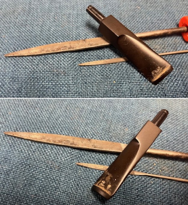 I sanded the surface of the stem with 320-3500 grit sanding pads to smooth tooth chatters out and remove remnants of oxidation. When finished the stem looked much better.