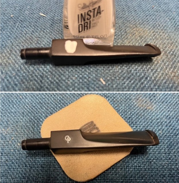 I polished the vulcanite with micromesh sanding pads – 1500-12000 grit pads. I wiped it down with Obsidian Oil after each sanding pad. I used Before & After Pipe Polish – both Fine and Extra Fine to further polish the stem.