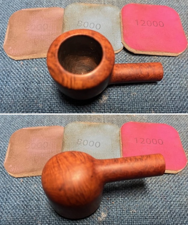 I polished the bowl sides and shank with micromesh sanding pads. I dry sanded it with 1500-12000 grit micromesh pads. I wiped it down with a damp cloth after each pad. It really began to be beautiful.