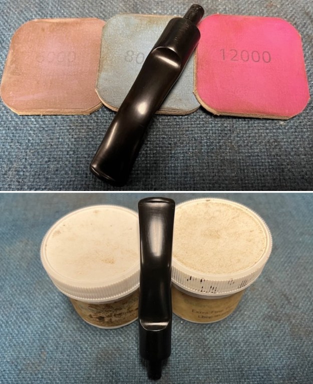 I polished the stem with micromesh sanding pads – dry sanding with 1500-12000 grit pads. I wiped the stem down after each sanding pad with Obsidian Oil. I did a final hand polish of the stem with Before & After Pipe Stem Polish – both Fine and Extra Fine. I gave it a coat of Obsidian Pipe Stem Oil. It works to protect the stem from oxidizing. I set it aside to dry.