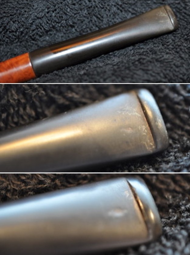 I took a photo of the rim top and the stem to show their condition. Jeff was able to clean up the cake and the lava overflow that was shown in the rim and bowl photos above. The rim top was clean as were the inner and outer edges of the bowl. The stem looked better and the tooth marks are visible on both sides.