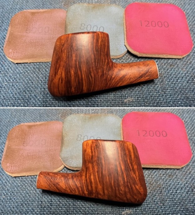 I polished the briar with 1500-12000 grit micromesh sanding pads – dry sanding the briar and wiping down the bowl after each sanding pad. It really began to take on a rich shine and the grain stood out beautifully.