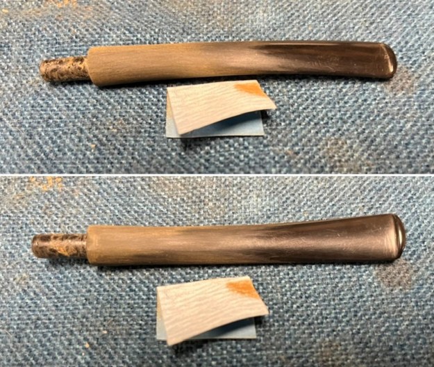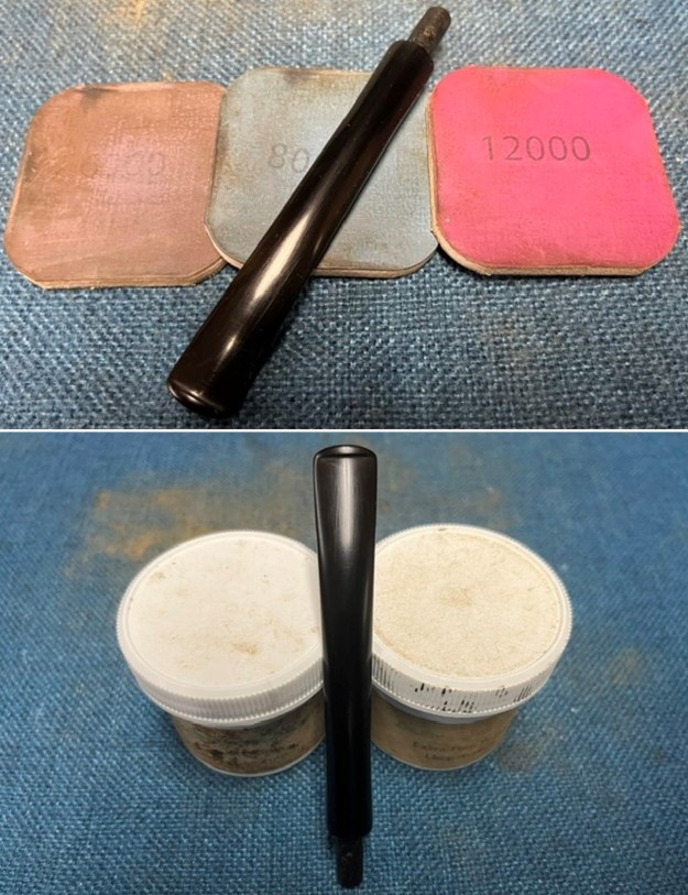 I polished the stem with micromesh sanding pads – dry sanding with 1500-12000 grit pads. I wiped the stem down after each sanding pad with an Obsidian Oil Cloth. The stem began to take on a rich shine.