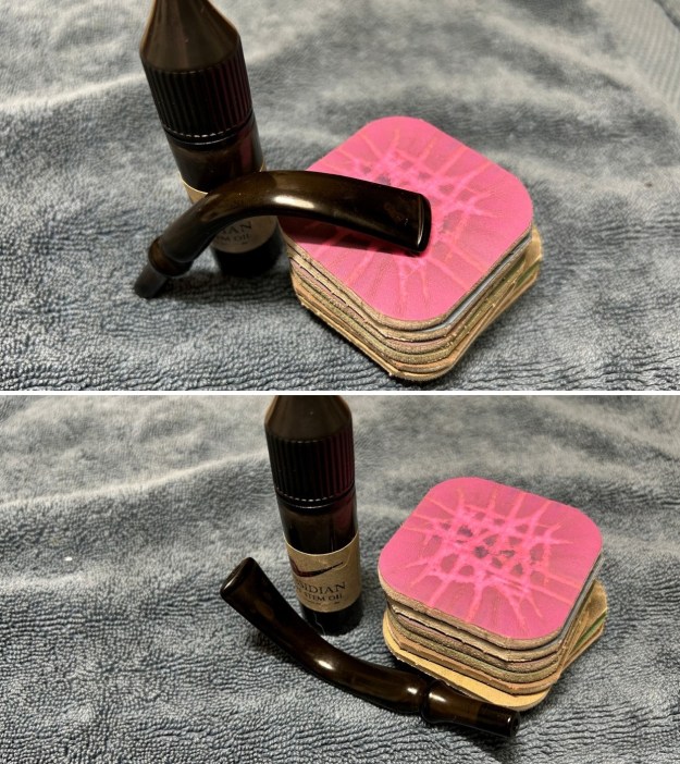 I polished the stem with micromesh sanding pads – wet sanding with 1500-12000 grit sanding pads. I wiped it down after each sanding pad with Obsidian Oil. I polished it with Before & After Pipe Stem Polish – both Fine and Extra Fine.