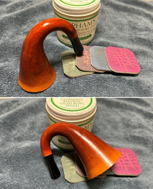 I polished the briar with micromesh sanding pads – dry sanding with 1500-12000 grit sanding pads. I wiped the bowl down with a damp cloth after each sanding pad. The bowl developed a rich shine.