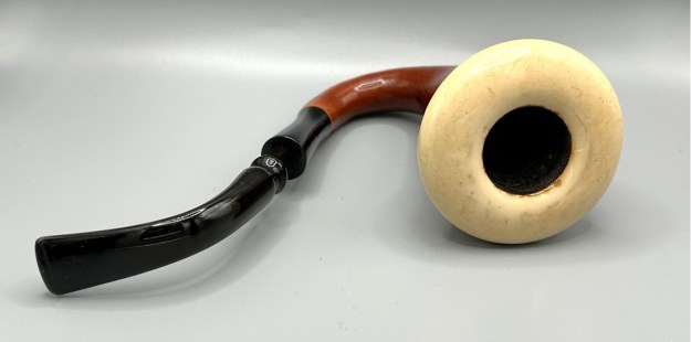 I was utterly surprised when I took this pipe out of the box and compared it to the before photos. Jeff had done a great job cleaning up the pipe as usual. He reamed the pipe with a PipNet reamer and cut back the cake back to the bare briar. He cleaned up the walls with a Savinelli Fitsall Pipe Knife. Surprisingly the walls looked unscathed from the heavy cake. He scrubbed the interior of the bowl and shank with pipe cleaners, cotton swabs, shank brushes and alcohol to remove the tars and oils. He scrubbed the exterior of the pipe with Murphy’s Oil Soap and a tooth brush to remove the grime from the finish. He worked on the rim top lava and darkening with the soap and tooth brush. He scrubbed the inside of the stem with alcohol and pipe cleaners. He scrubbed the exterior of the stem with Soft Scrub and then soaked it in Briarville’s Deoxidizer. He washed it off with warm water to remove the Deoxidizer. The pipe looked far better when it arrived.