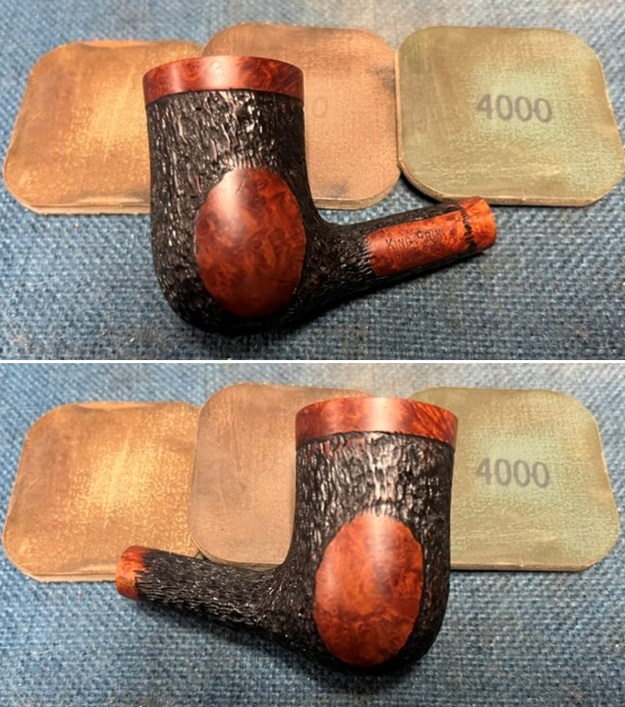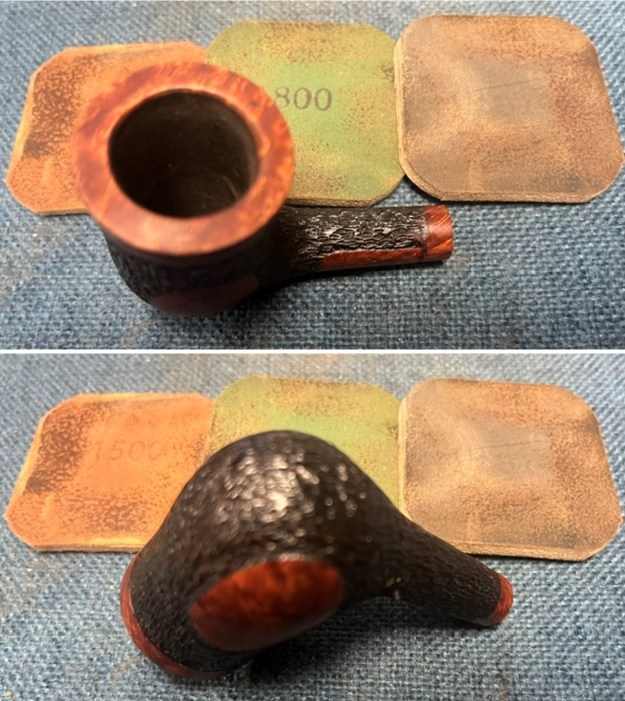 He took photos of the bowl and heel to show the condition of the finish. The combination of rustication – tight pattern – and smooth portions look very good and are a great contrast to the vulcanite stem.