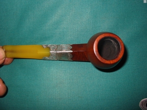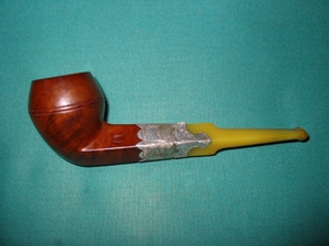 When the pipe arrived it was in rough shape. The silver was very tarnished and dull looking. It was also scratched and much worn in places. The bowl had a very spotty finish with just the remnants of the original stain. The rim was tarred and the bowl heavily tarred and caked. The stem is made of some amberoid substance or may be Bakelite. It seems to be a softer material than the hard Bakelite. It has a bone tenon that was over turned so the stem was off to the side. The button also has an orific hole in the button instead of the newer slotted button.