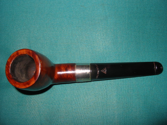 When both bowls are clean and free of dirt and tars I wash them down with a fresh alcohol cloth and then they are ready to stain. I use Feibings Shoe Dye for the stain and have found that the Medium Brown dye works well and matches most of the stains on these old pipes. Both pipes in the pictures were stained with the same Dye. I use the dauber that comes with the Dye (the dye is available at most shoe repair shops for about $4-$5). I coat the bowl while holding the stem. As the stain will turn your hands brown, wear rubber gloves for the staining. Once it is stained light the stain on fire with a match to set it. You will think I am nuts in suggesting this and think you will catch things on fire but like the alcohol in Baked Alaska it only burns blue for a short while and really sets the stain into the grain of the wood.