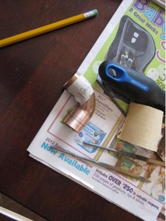 The copper piping is marked and ready to be cut.