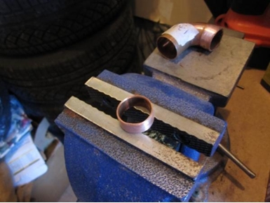 The silver cap was removed with use of heat. Once it is removed the crack is very visible. Copper piping will act as source of repair band.