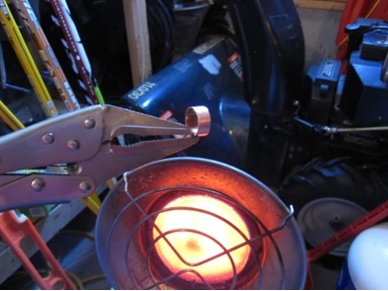 Heat for installation. No blow-torch to heat…had to use my propane space heater (it worked!):