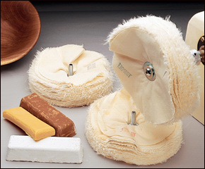 When I first mounted the wheels the recommendation that I was given was to “clean” the wheels initially by backing a sheet of 100-grit sandpaper with a small board and touching the sandpaper to the wheel. I chose not to do so, because the description of the mess deterred me. It said that the air around the buffer would be filled with fibers and lint. I decided to live with this while I broke them in with the polishing compounds.
