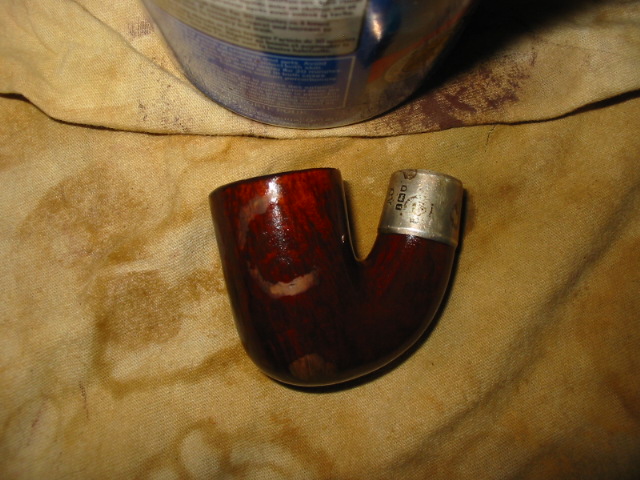 I put the stem back on the pipe and took it to the buffer. I buffed the whole thing with White Diamond and then cleaned the silver band with silver polish and polished the entire pipe with multiple coats of carnauba wax.