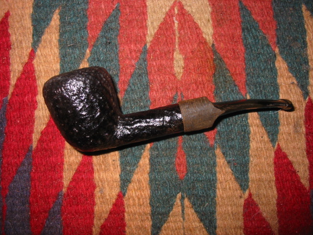 Last evening I finished restemming this little nosewarmer. It is stamped Bounty over Real Briar on the bottom of the shank. It has a nice sand blast finish and is stained black over a red undercoat. It length is 4 ½ inches, height is 1 ½ inches, outer diameter of the bowl is 1 ¼ inches and the chamber diameter is 5/8 inches.