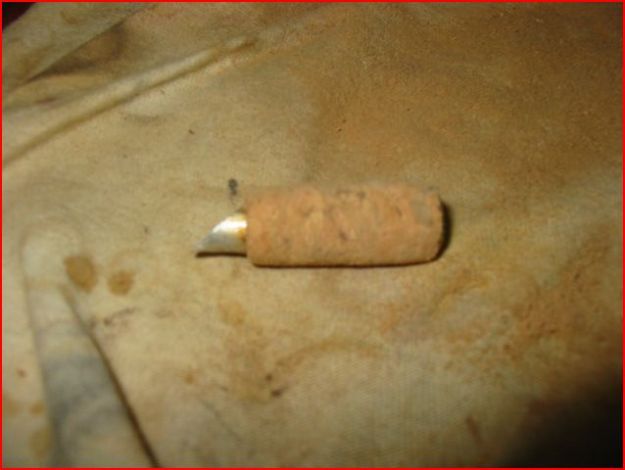 Then it was time to figure out how to work on the mortise. I did a bit of searching to see if I could find what the original mortise looked like when it was new. There was nothing that I could find to make the job a bit easier. So I began to work through some options. I had a wine cork that I kept here so I thought that might be a good base to begin with. I drilled the cork with a ¼ inch drill bit so that the airway through it would be open and easy to work with.