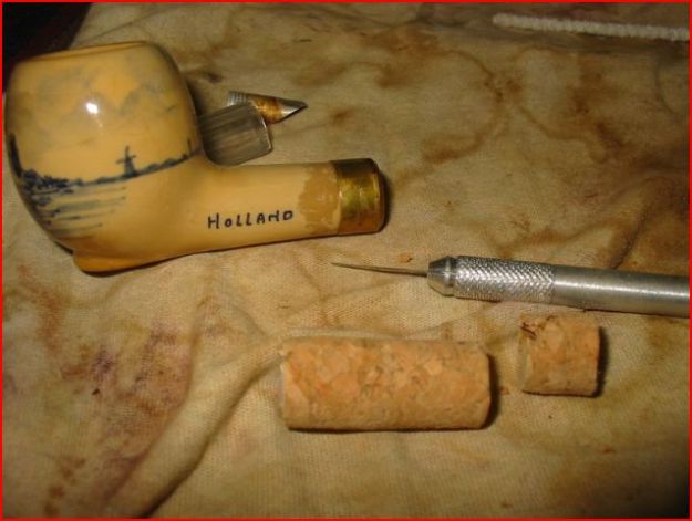 Once the cork fit correctly, I greased it with some Vaseline jelly and fit it in the shank. I was able to easily press it in place. When I was level with the end of the shank I use a ball point pen to set it a bit deeper to receive the tenon with a slight bevel.