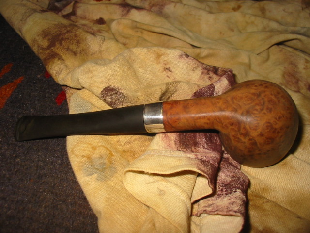 One of the reasons I bid on the pipe was that I had a BBB taper stem in my can of stems that looked like it would be a perfect fit for the pipe. Once I had it out of the box and on my work table I took out the old stem and sanded the tenon a little to make it fit correctly and slid it into place. The diameter of the stem was a perfect match to the shank and the tapered stem fit well with the pot shape. The two looked like they belonged together. Once the fit was smooth and well seated I put the replacement saddle stem into my can of stems to be used one day on a pipe that needed to be restemmed.