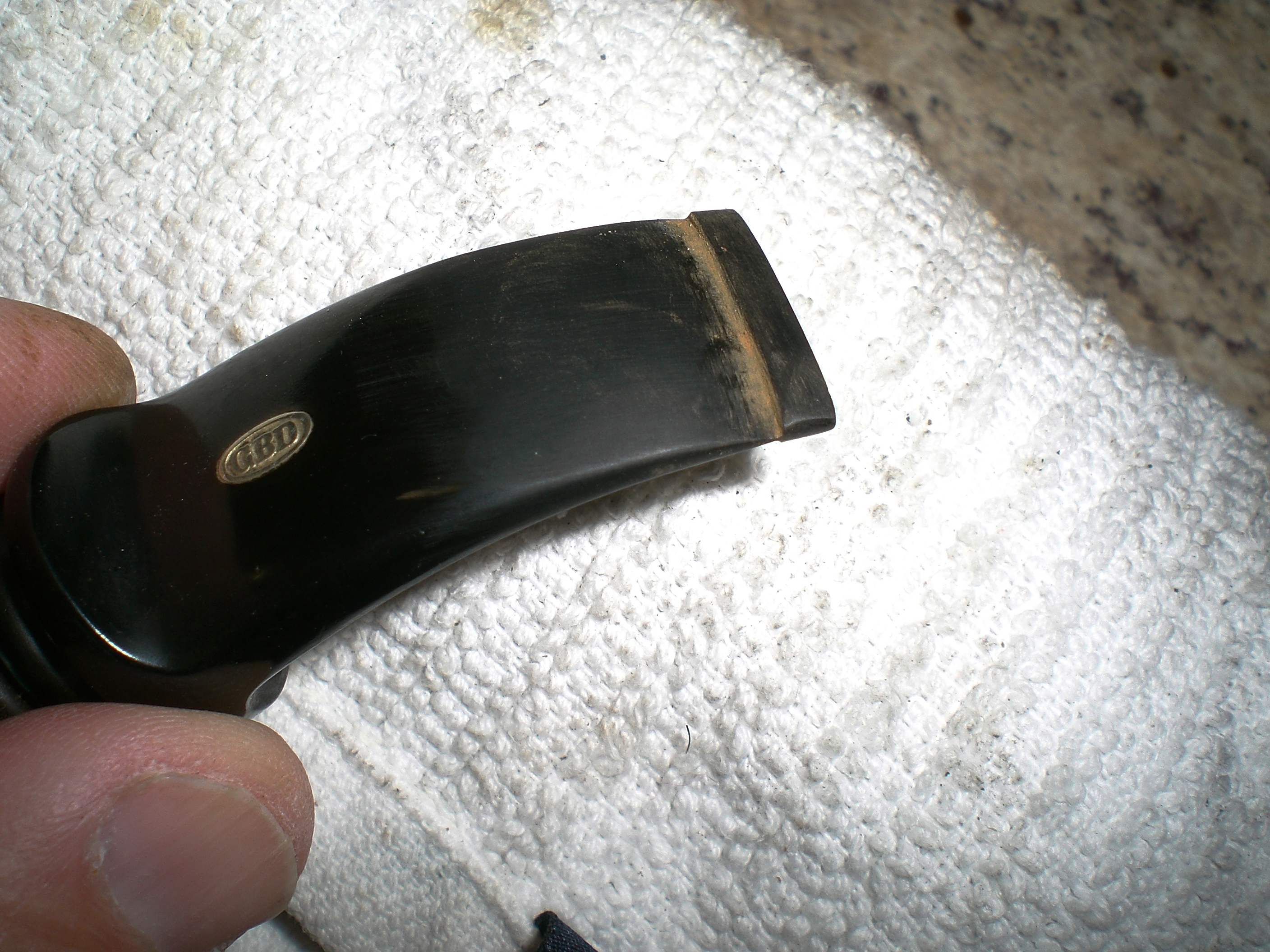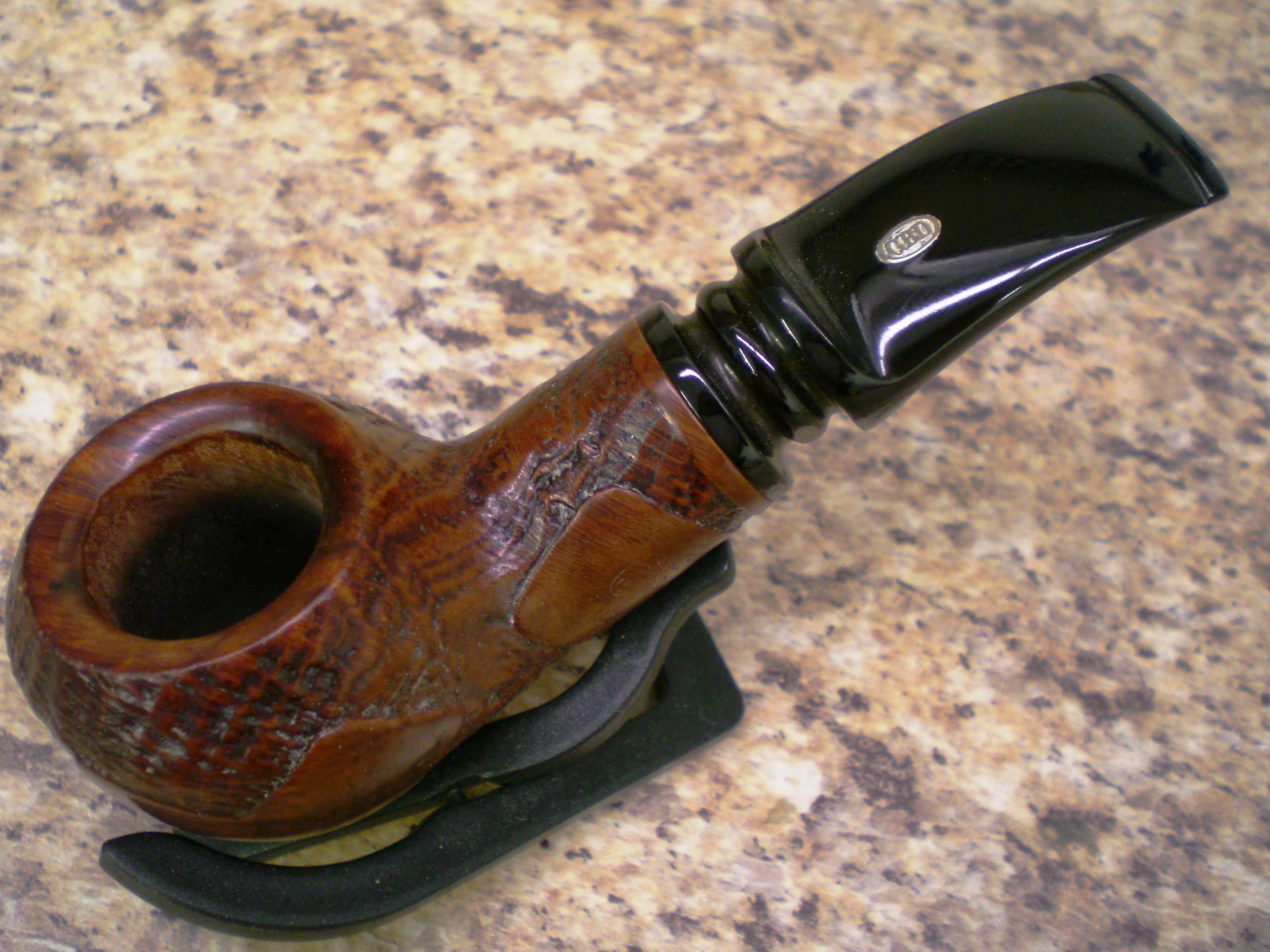 Well, I fell prey to yet another GBD 9438 in Tapestry finish on Ebay. Yes, another chair leg stem, my fourth this year. However, this time I made a somewhat foolish offer on this particular pipe using my Ebay Android phone app. Using the phone, I completely missed that the seller stated a piece was missing from the stem and the large detailed photograph of the damaged area.