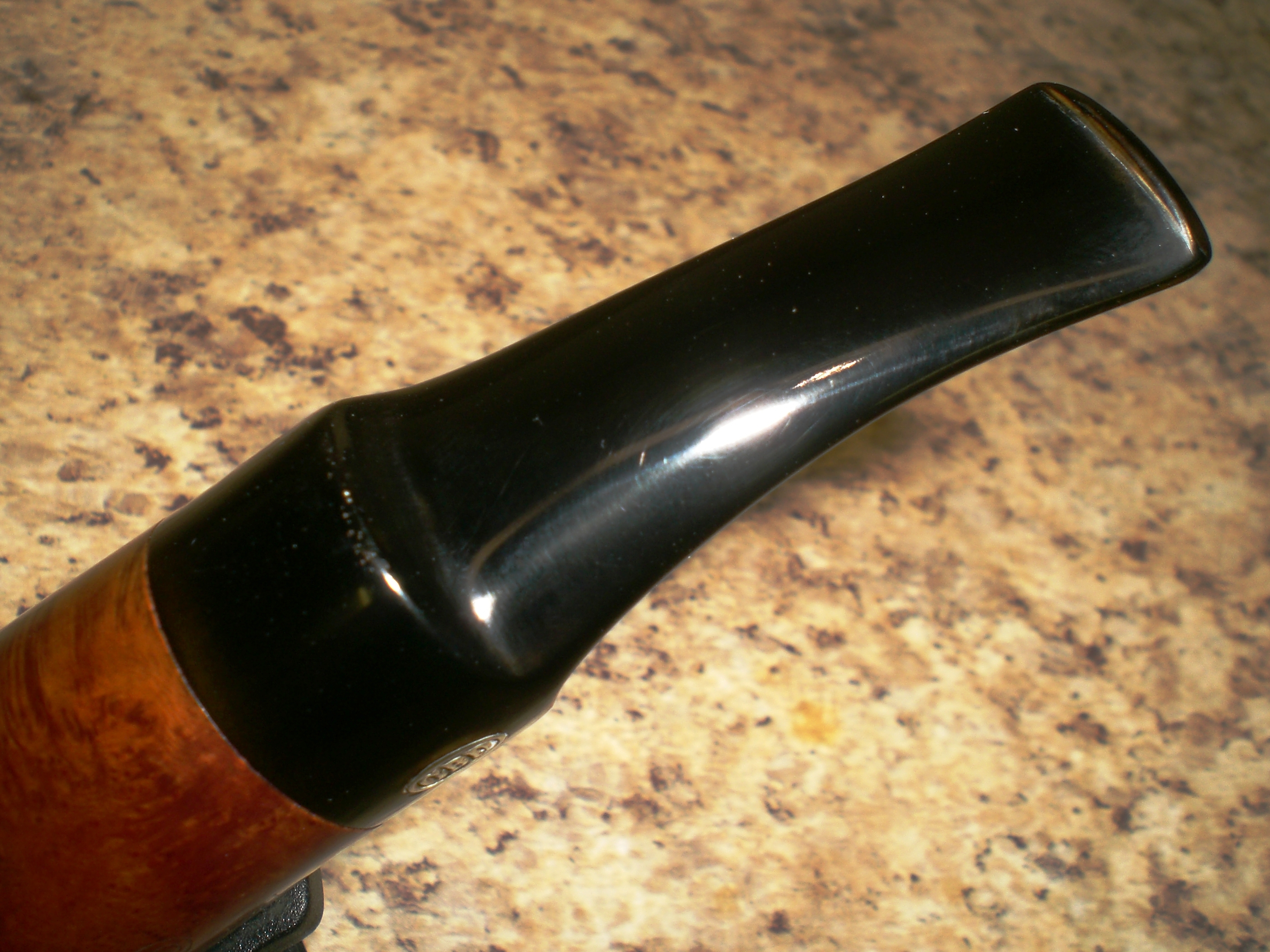 Finally one day I decided to see if I could repair the hole. I set the new tenon with epoxy and once it was dry I went to work on the new “air hole” I had drilled in the stem! I filled it with epoxy and vulcanite dust to work a patch. The white spot in the photo above is the resultant patch. It is actually a grey spot. The vulcanite dust and epoxy dried to a mottled grey finish. The hole was repaired but whenever I smoke the pipe I am reminded that in the future I will measure twice and drill once! That grey spot speaks loudly to me. The good news is that the pipe smokes very well.