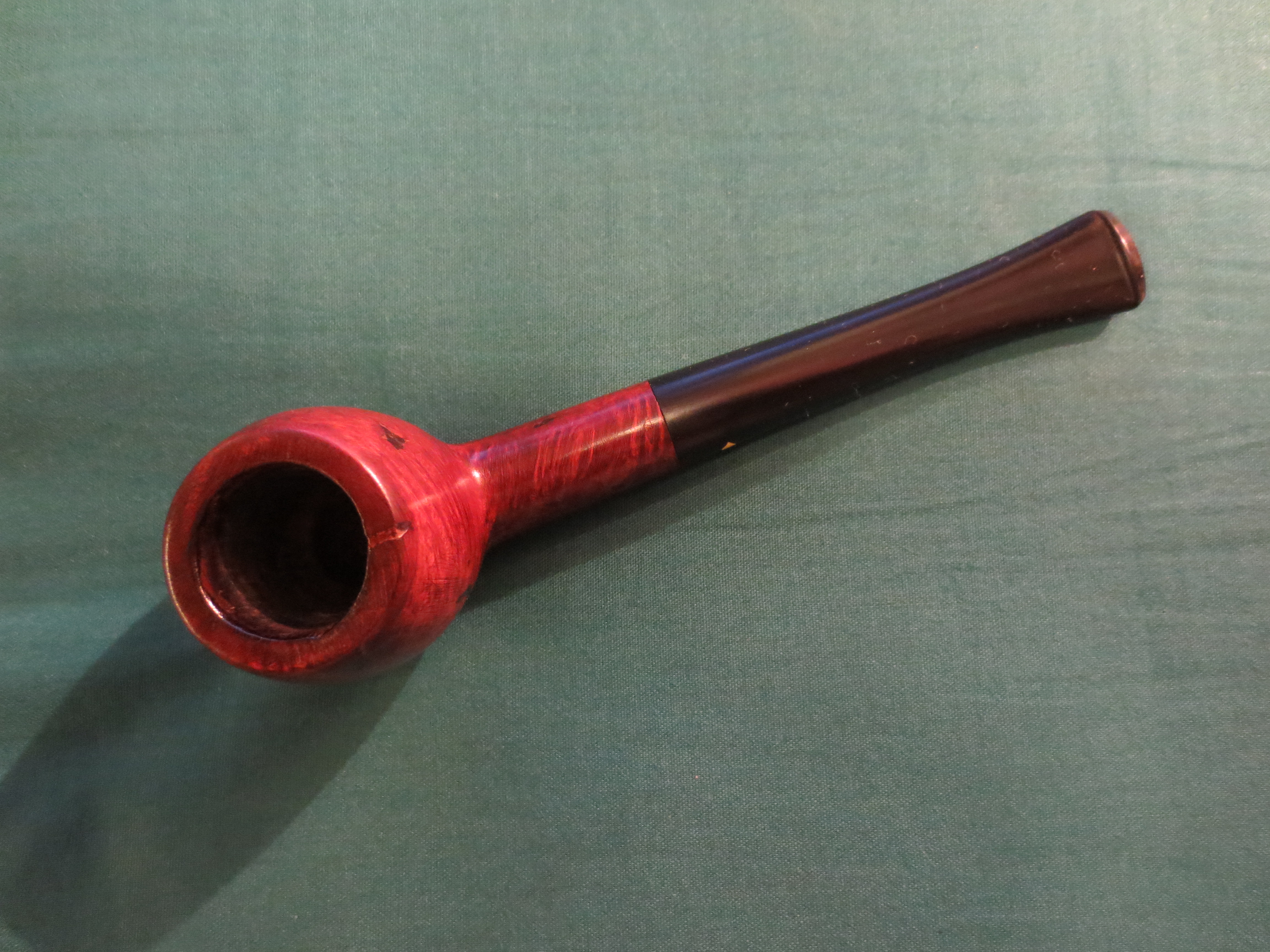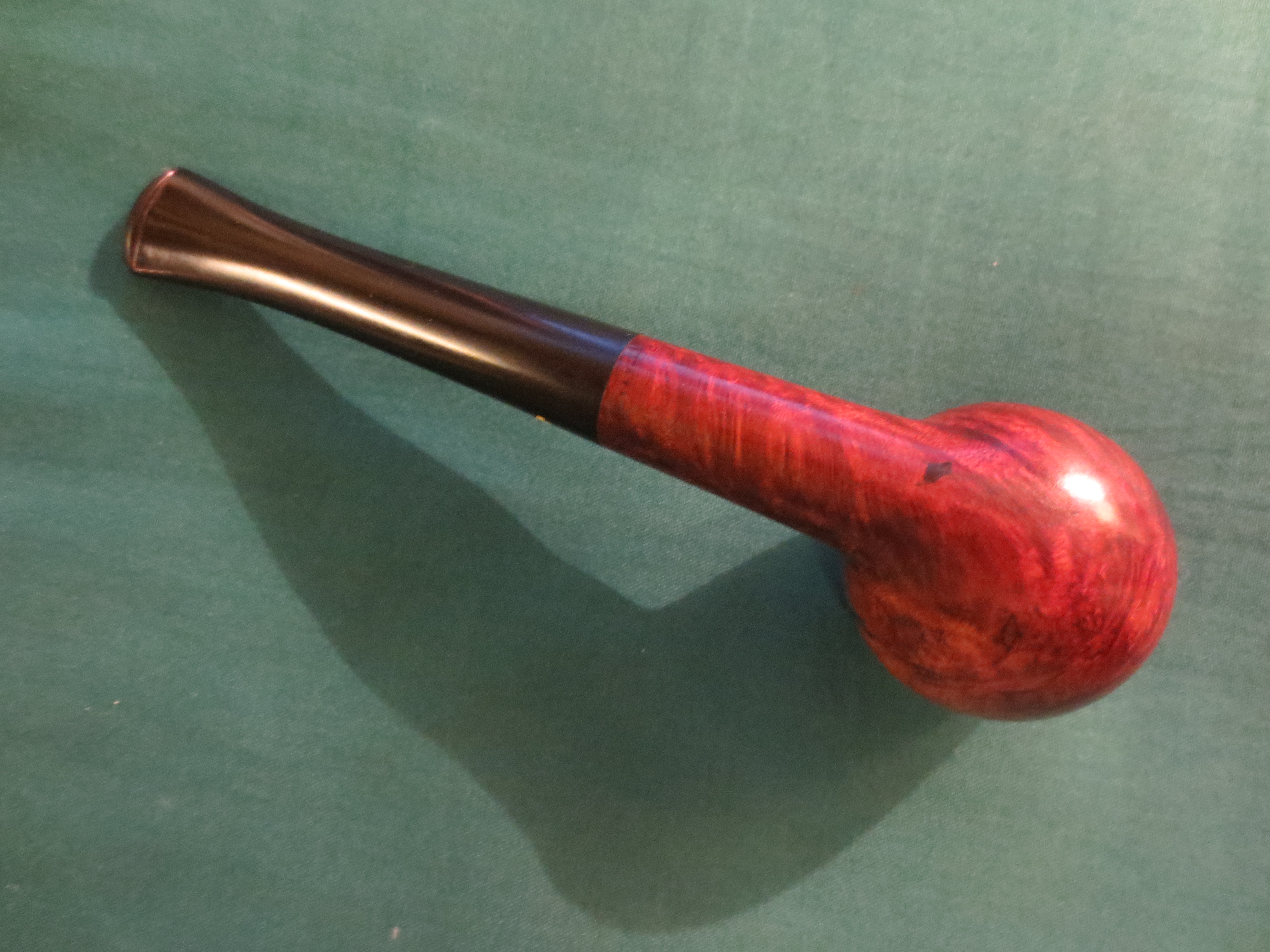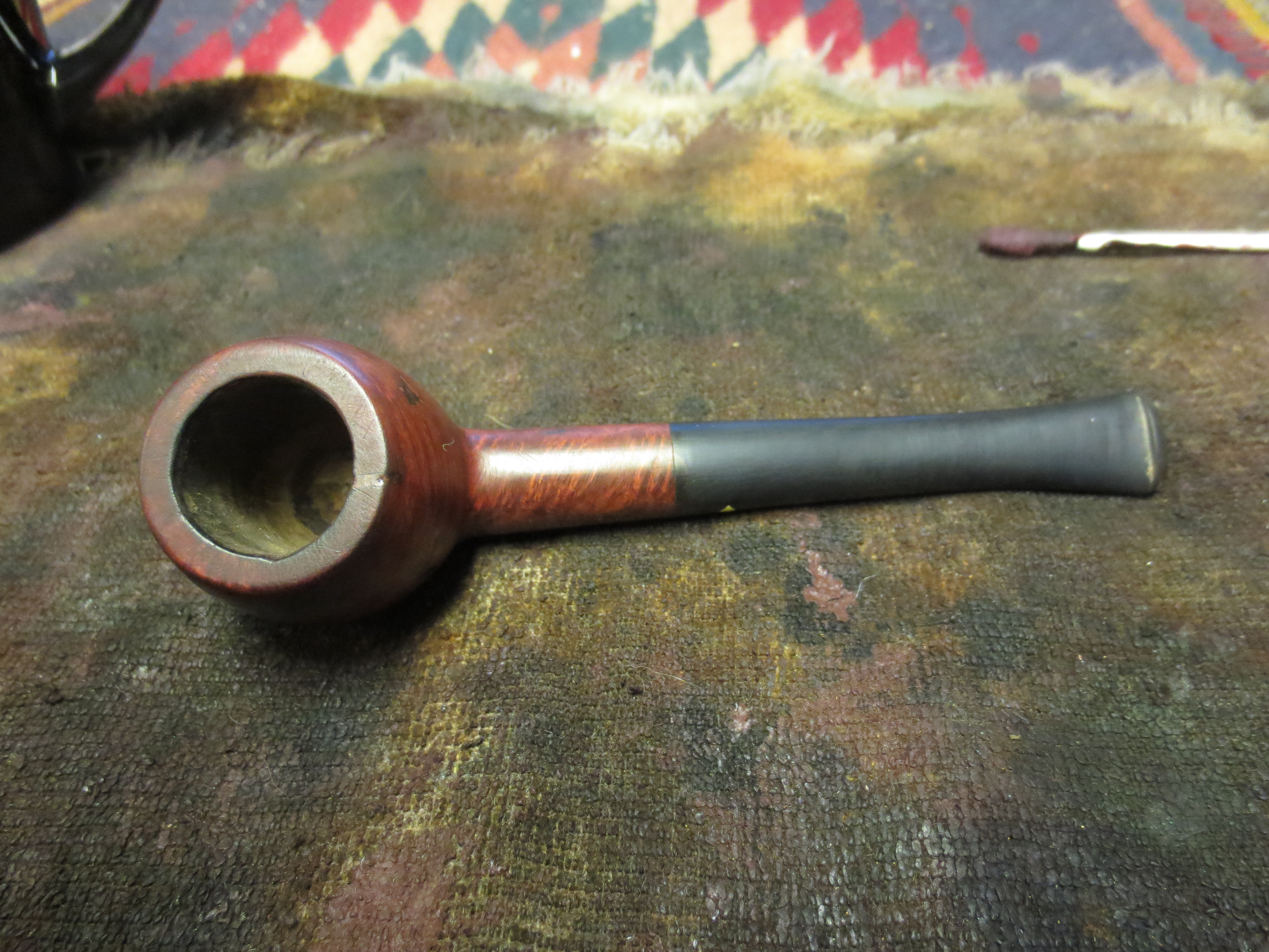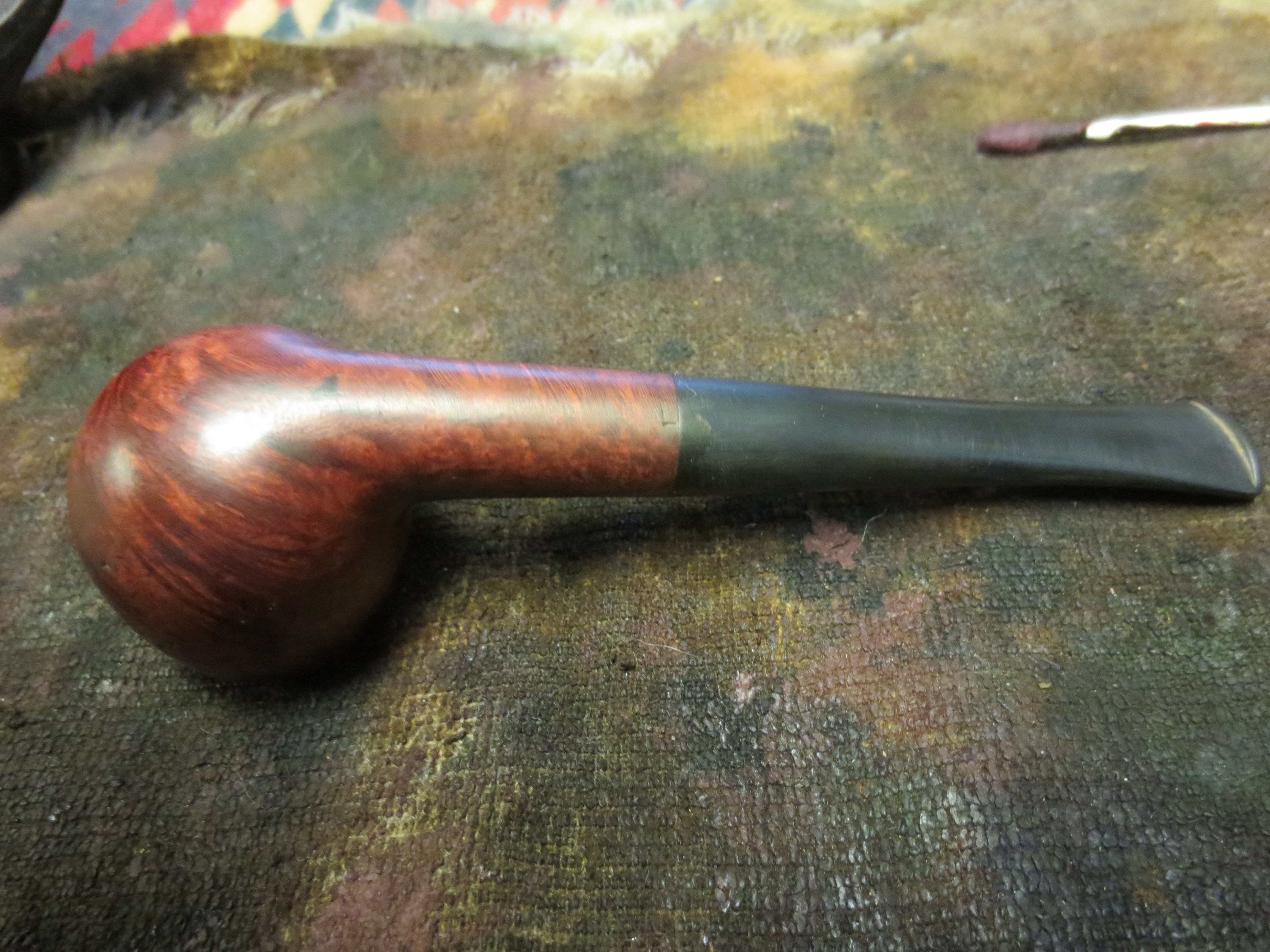 I decided to stain the pipe with an oxblood aniline stain. I applied it with a cotton swab, flamed it, restained and reflamed it. Once it was dry I hand buffed it with a soft cotton cloth before taking it to the buffer. The next four photos show the pipe after the staining and initial hand buff.