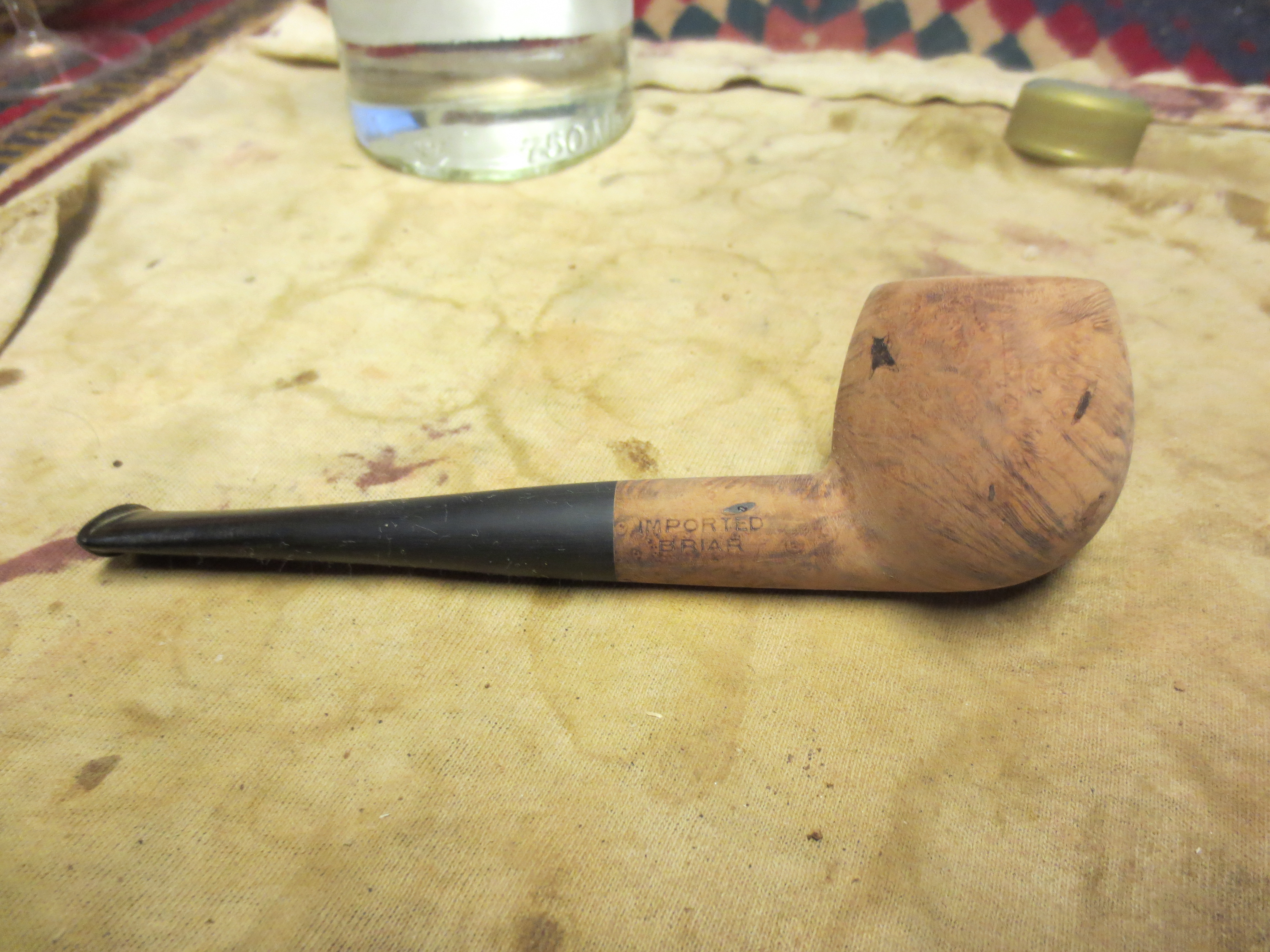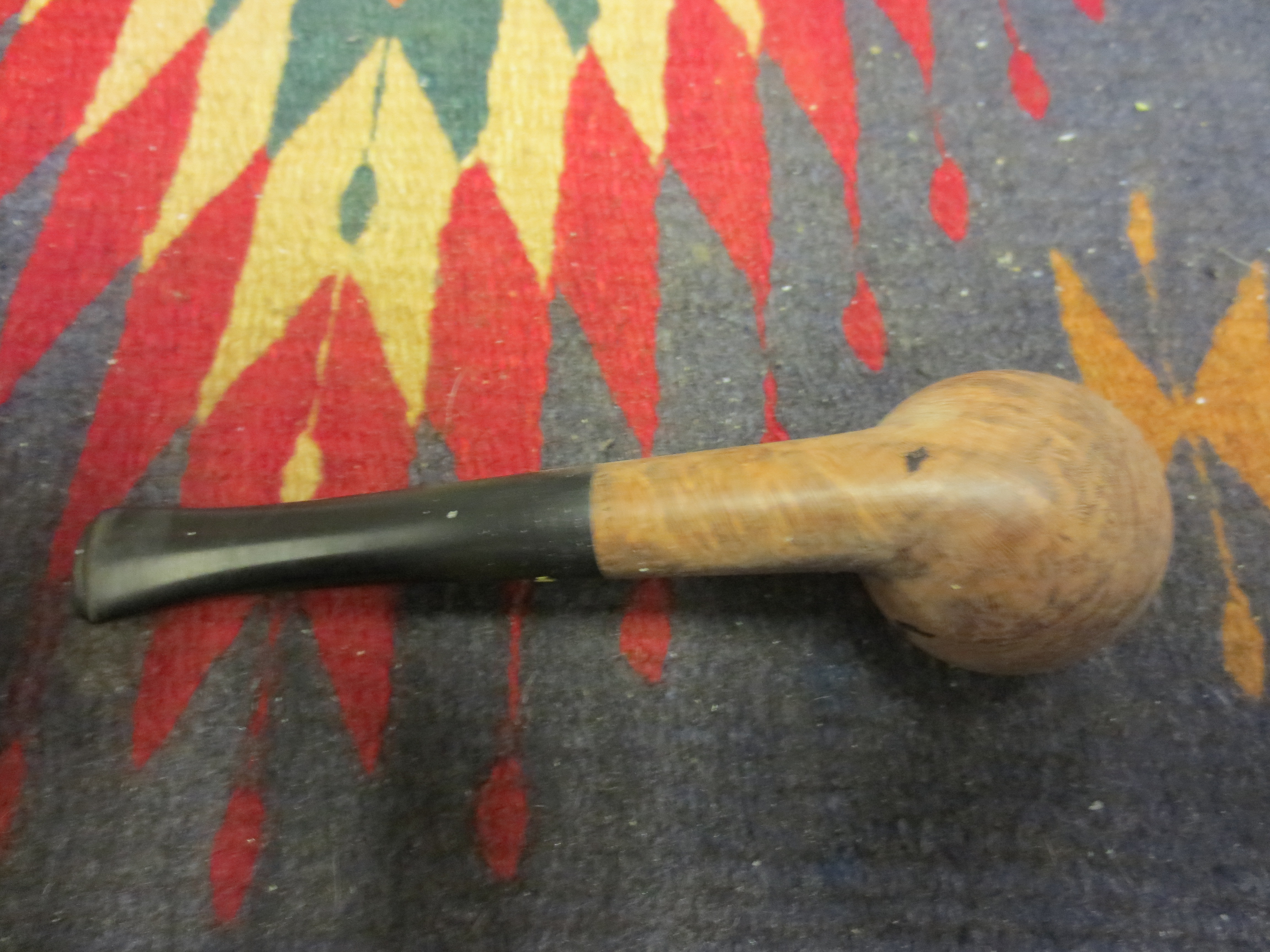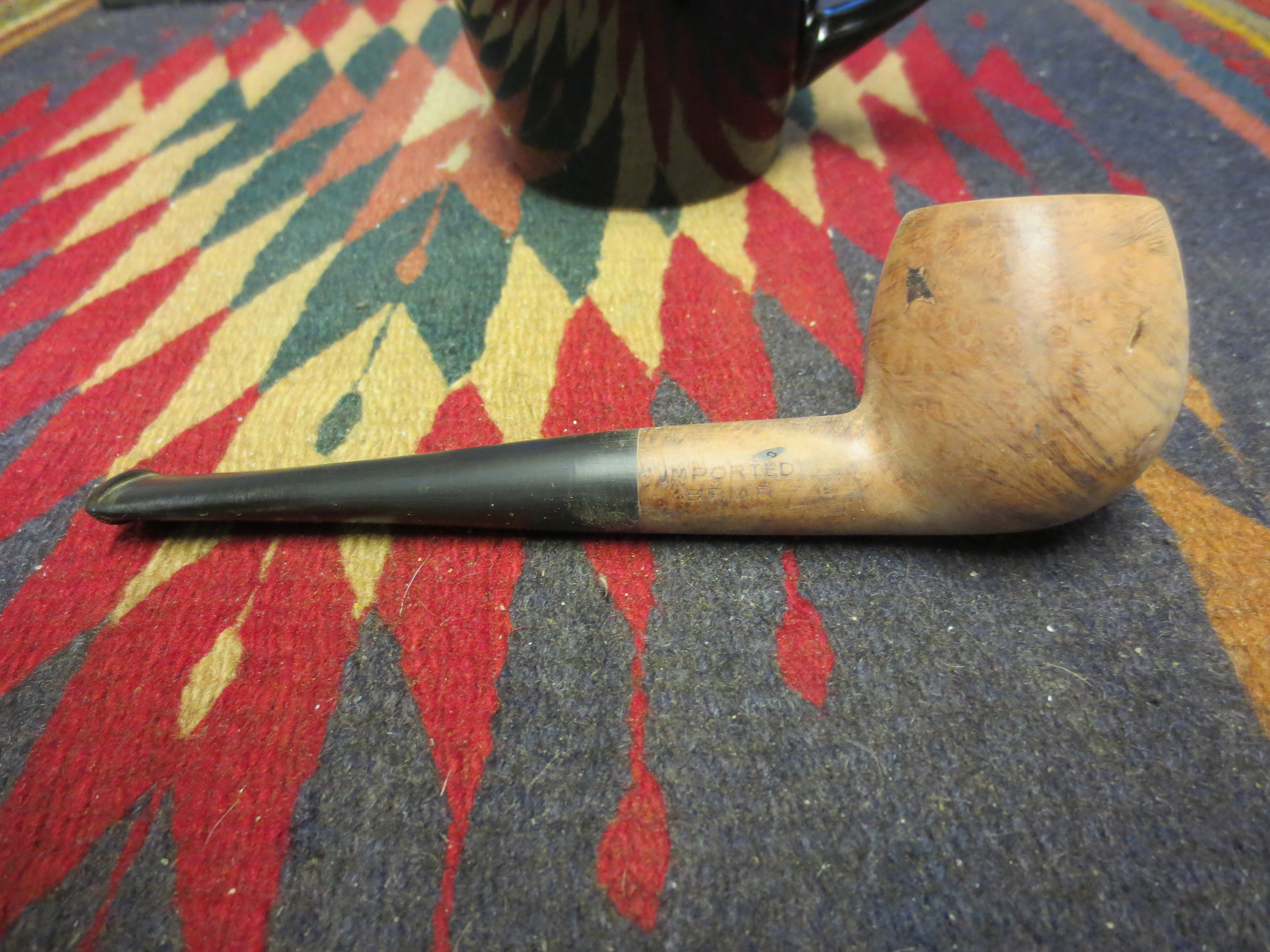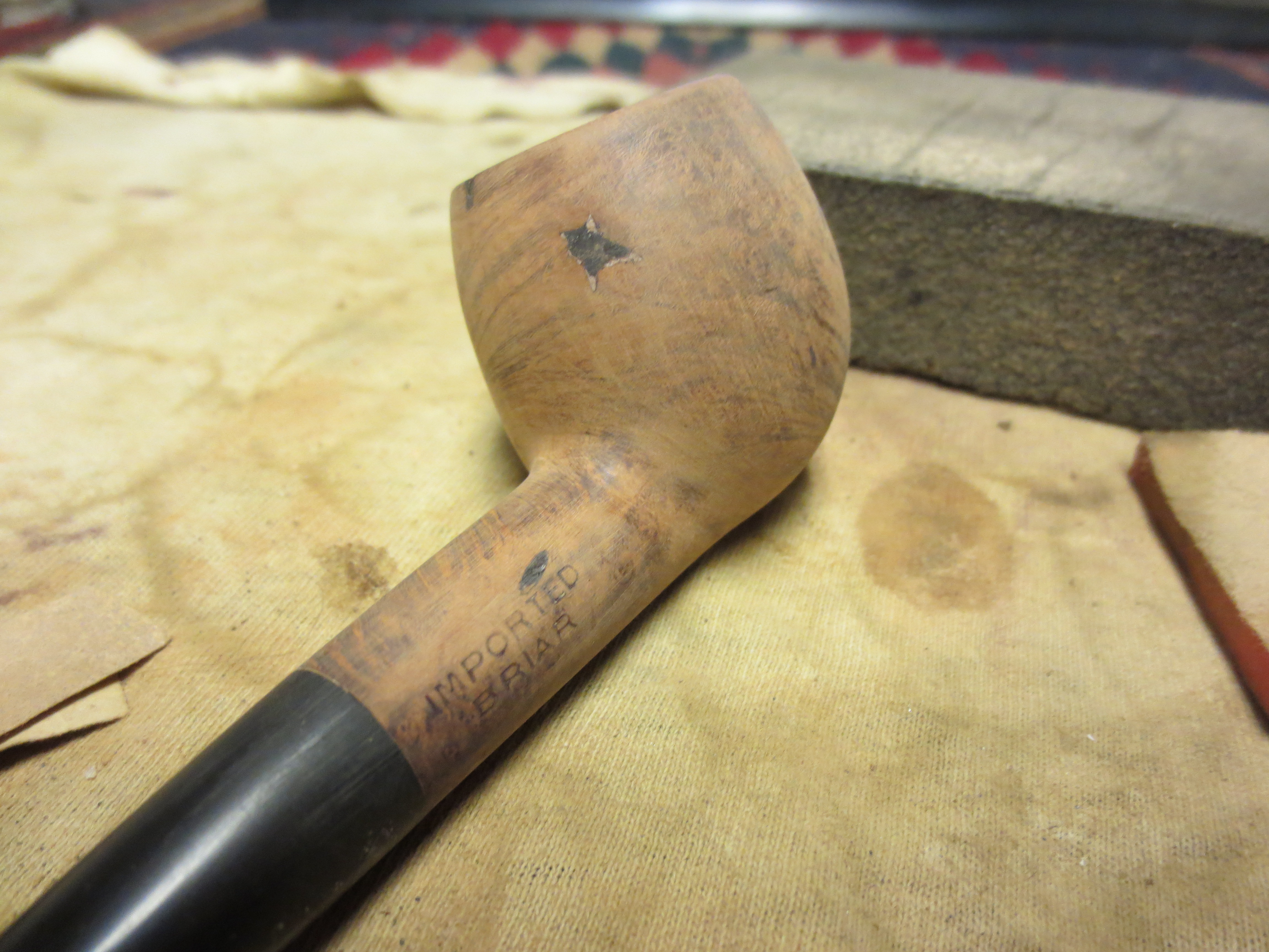 I decided to stain the pipe with an oxblood aniline stain. I applied it with a cotton swab, flamed it, restained and reflamed it. Once it was dry I hand buffed it with a soft cotton cloth before taking it to the buffer. The next four photos show the pipe after the staining and initial hand buff.