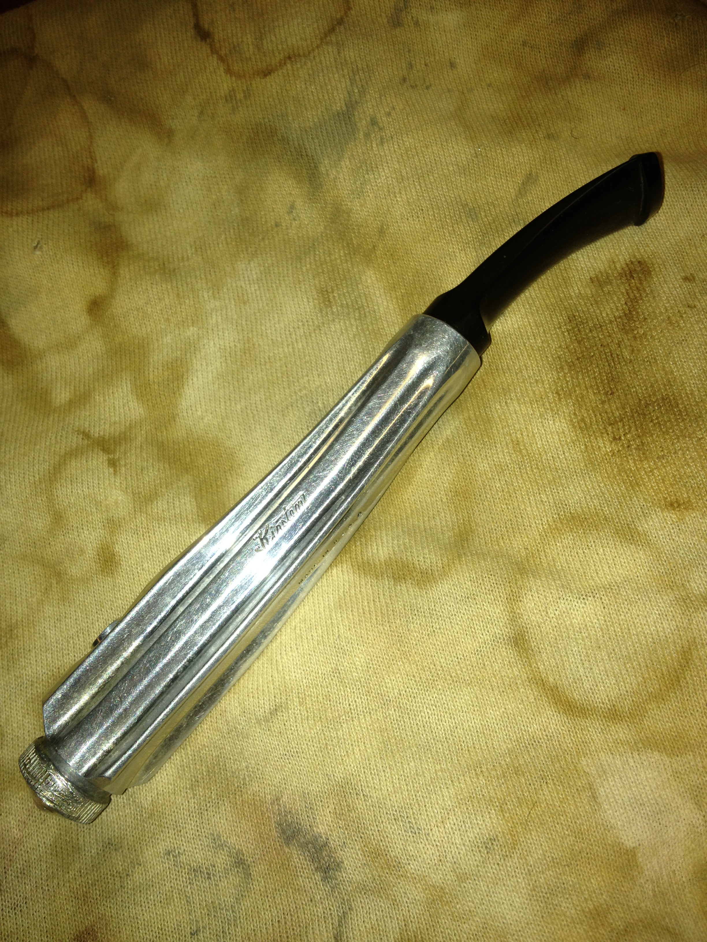 My fourth experiment involved soaking the stems in an Oxyclean solution. I had heard from a variety of people that this worked well and did not leave the stem pitted and rough when it was removed from the soak. I mixed the Oxyclean according to directions – a half scoop for a quart jar of warm water. I shook the jar to dissolve the Oxyclean and then placed the stems in the solution. I experimented with the time left in the solution – anywhere from 1-12 hours. Regardless of the amount of time left in the solution I found that the Oxyclean did not remove the oxidation but did soften it significantly. I learned from my experiments that it took over an hour of soaking to soften the oxidation. The longer soak did not significantly soften the oxidation more. When the stems were removed they were almost white from the work of the solution. I wiped them down with a cotton cloth to remove the surface oxidation that was on the surface and had been softened. I scrubbed it hard with the cloth and was able to remove a lot of the oxidation. However, there was still a remnant that had to be scrubbed or sanded. It is important to note that was less sanding of the stem involved with this method.