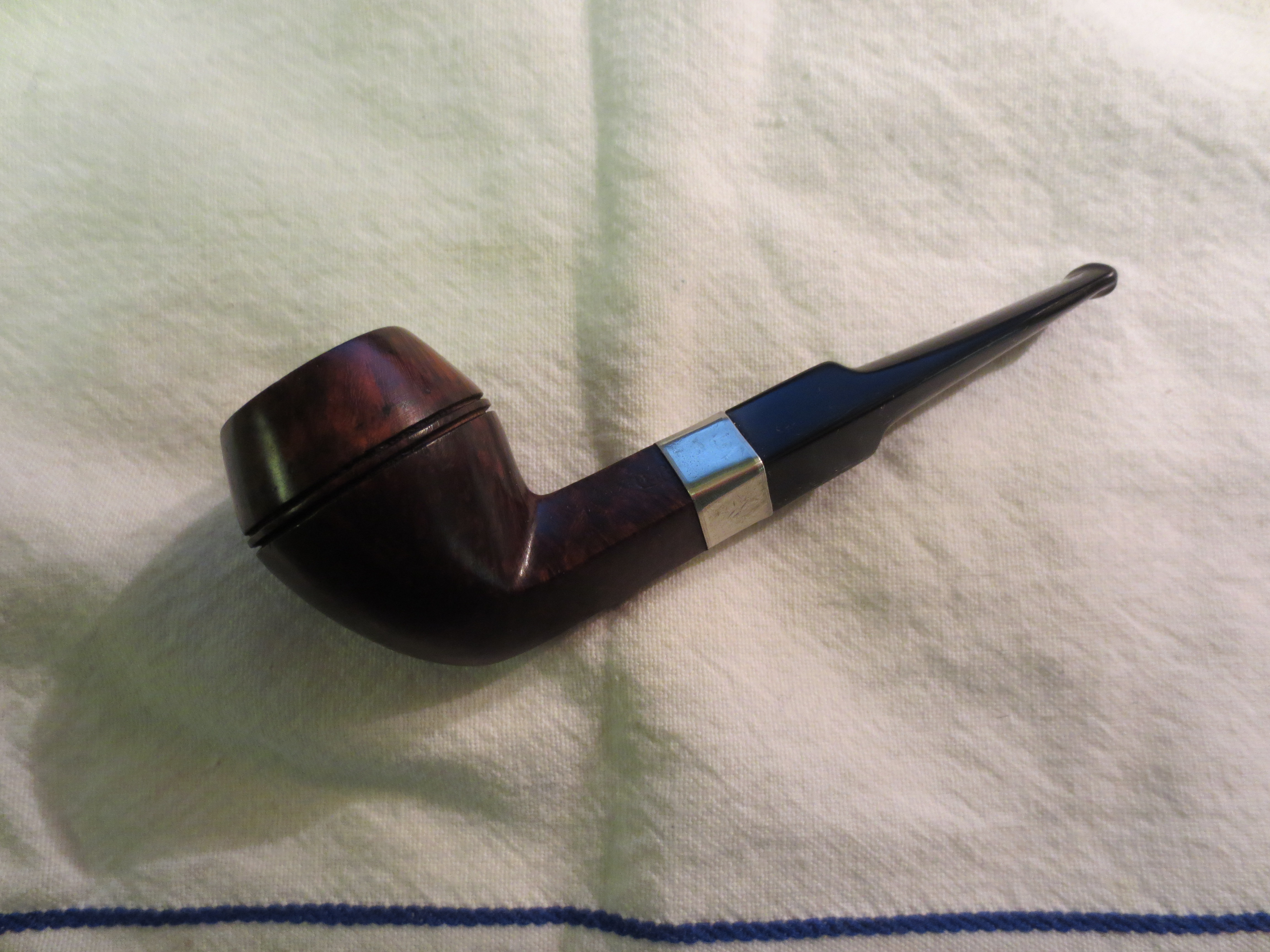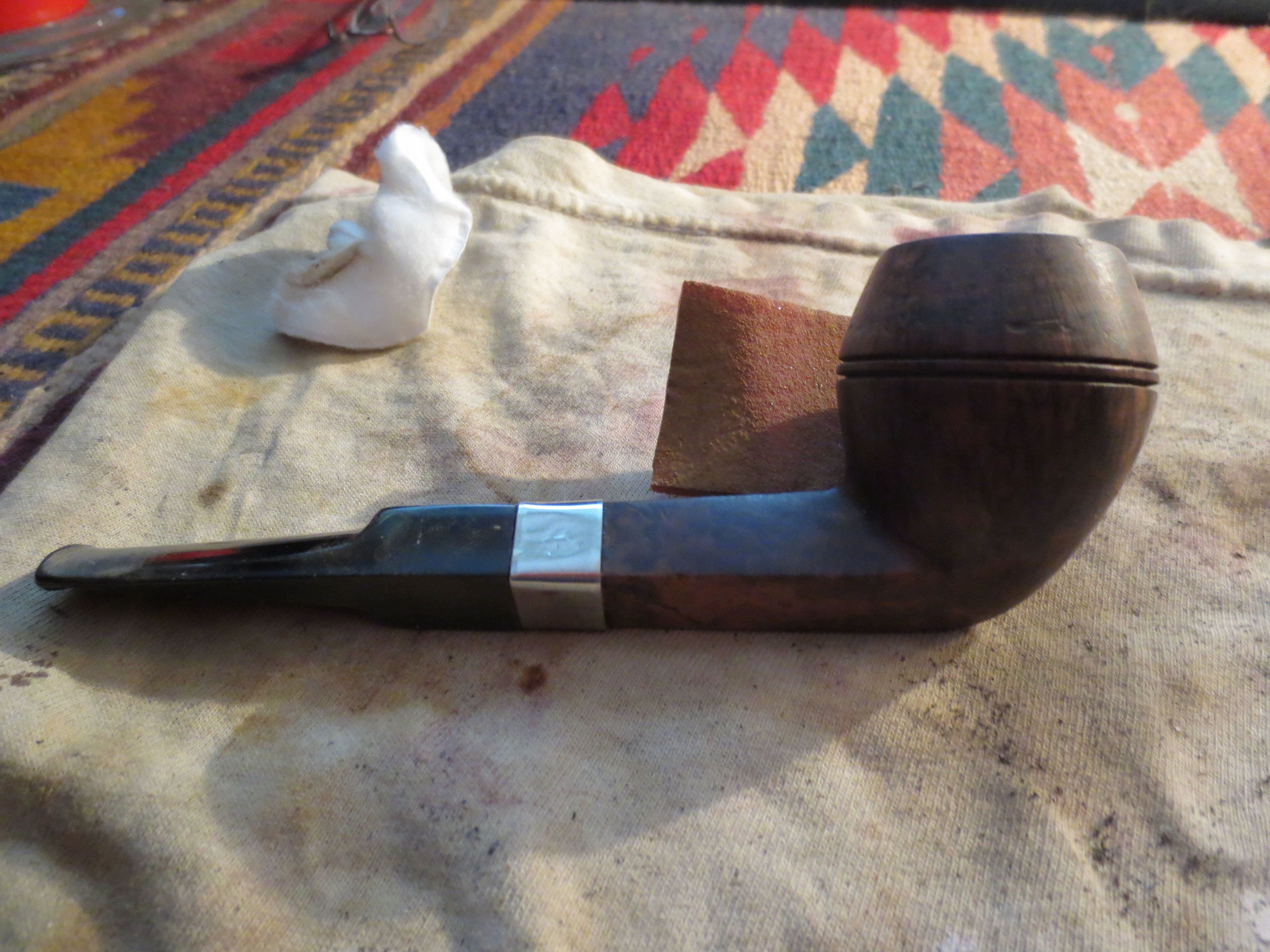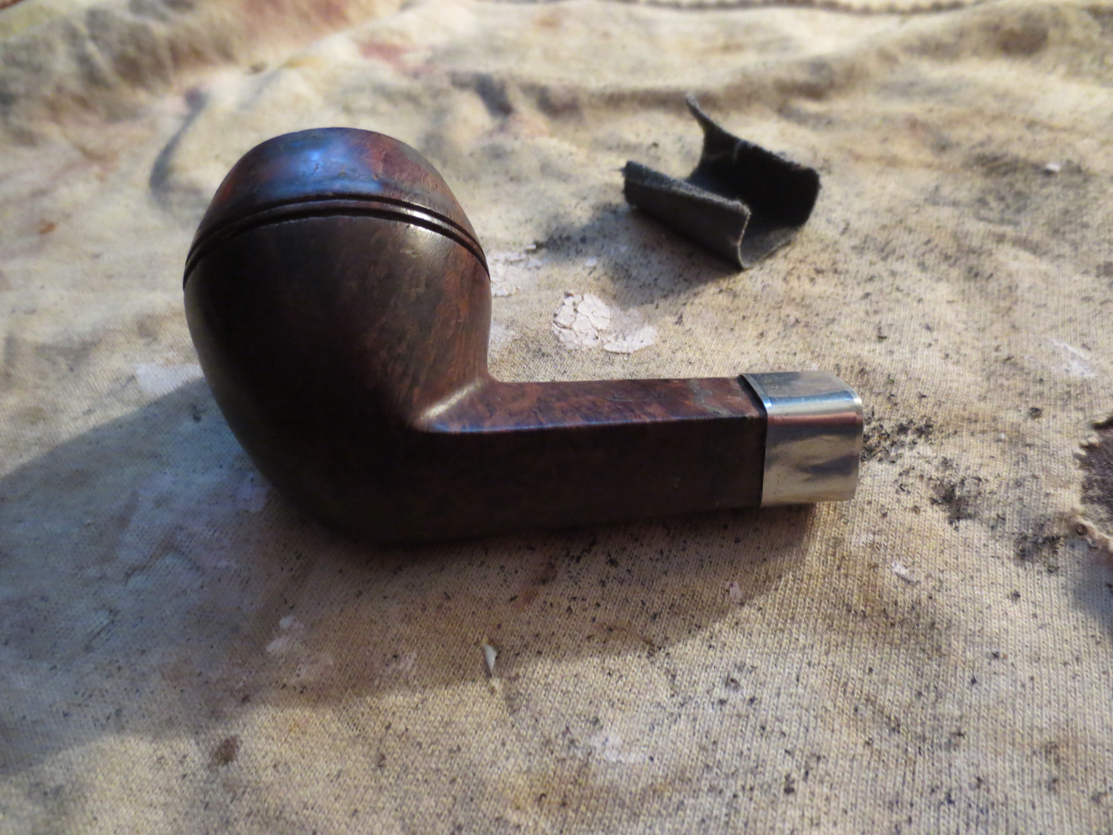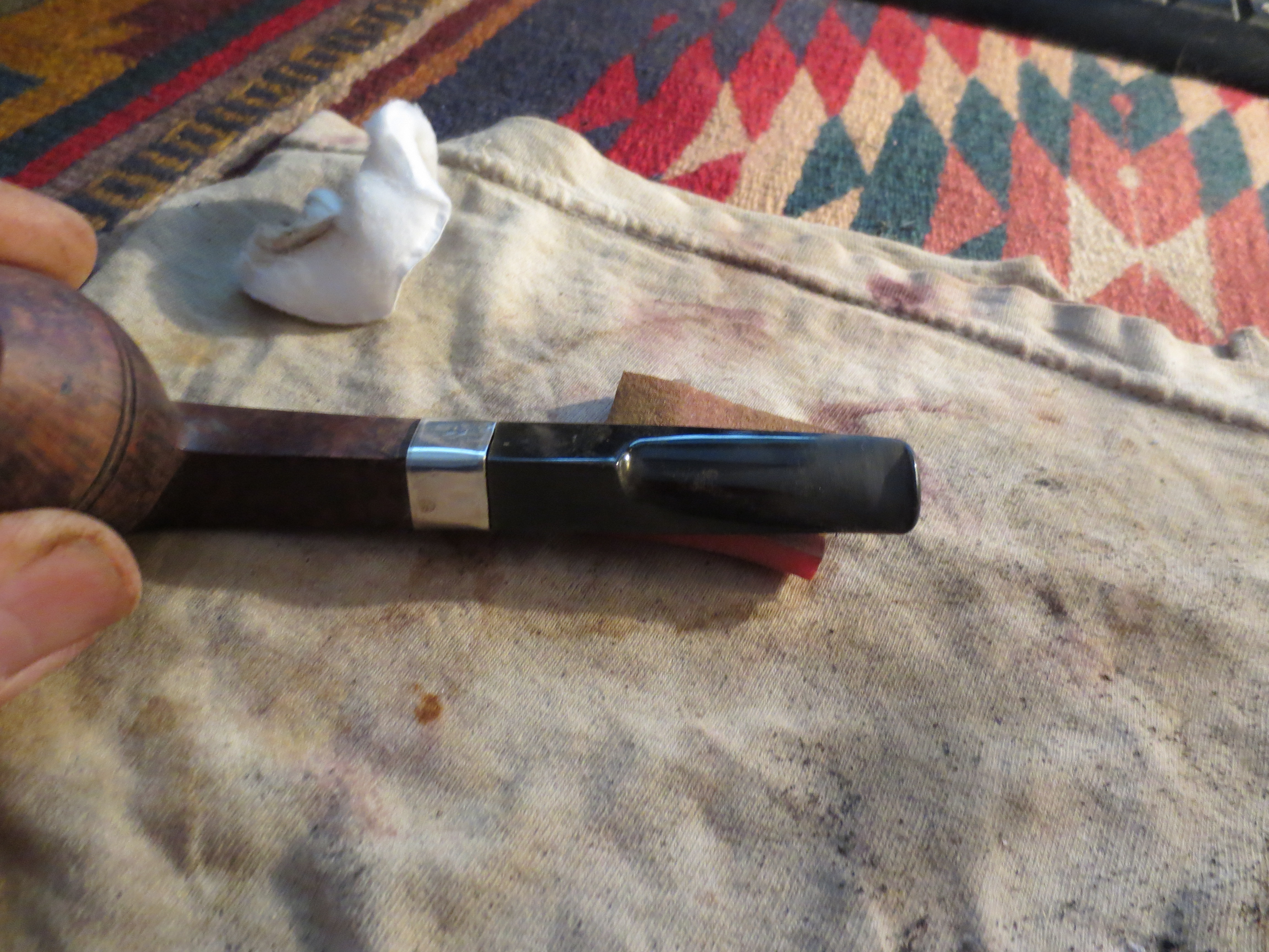 The next four photos below show the restemmed pipe. The stem fit perfectly against the band and the look was exactly what I was aiming for. The issue that remained was the two cracks that extended further than the band.