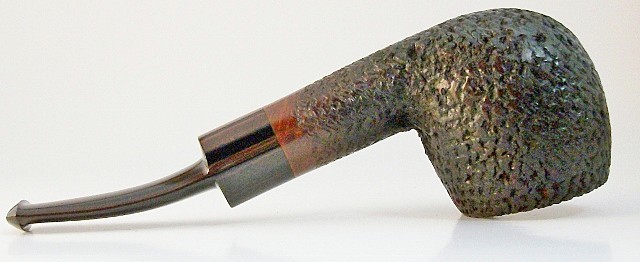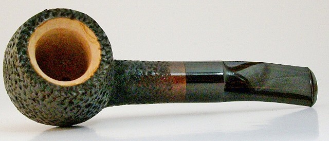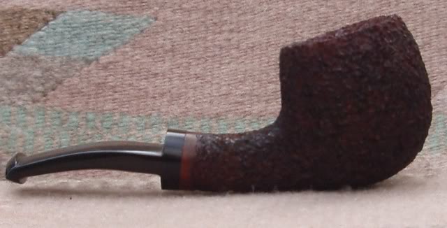 My first one is the Christmas pipe I had him make for me. The rustication is great and the shape is well done. Note the thickness of the stem from the saddle to the button and also the thick button on the end of the stem. I reworked this stem when I received it. I thinned it down, flattened it out and thinned the button as well. I worked it until it was comfortable for me.