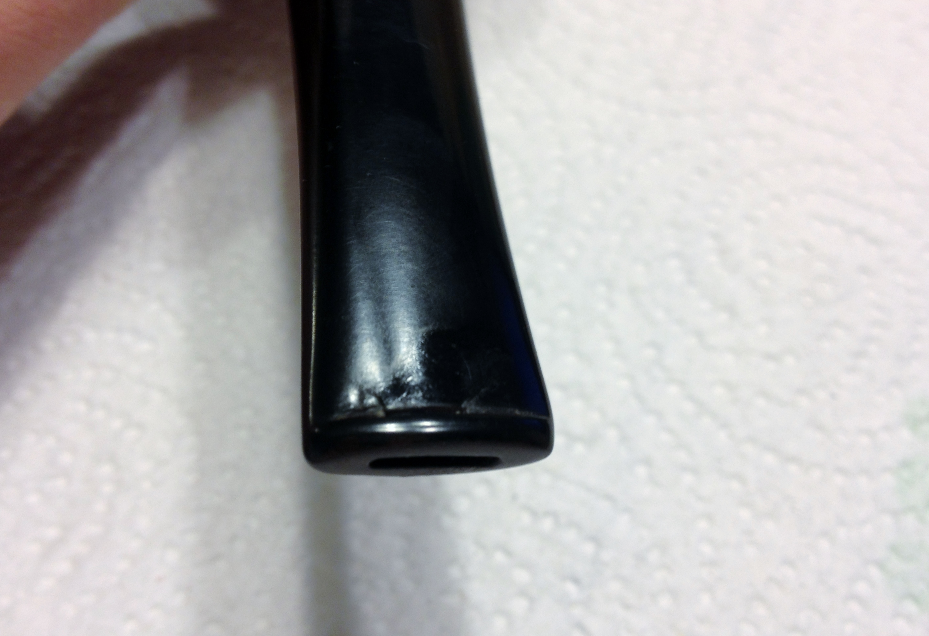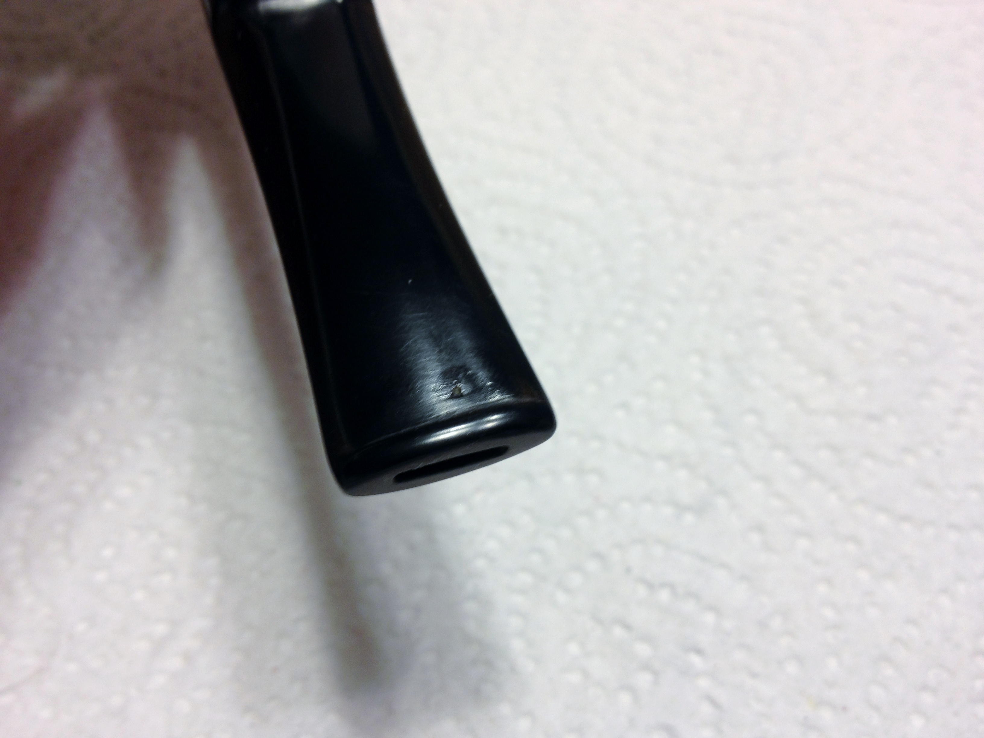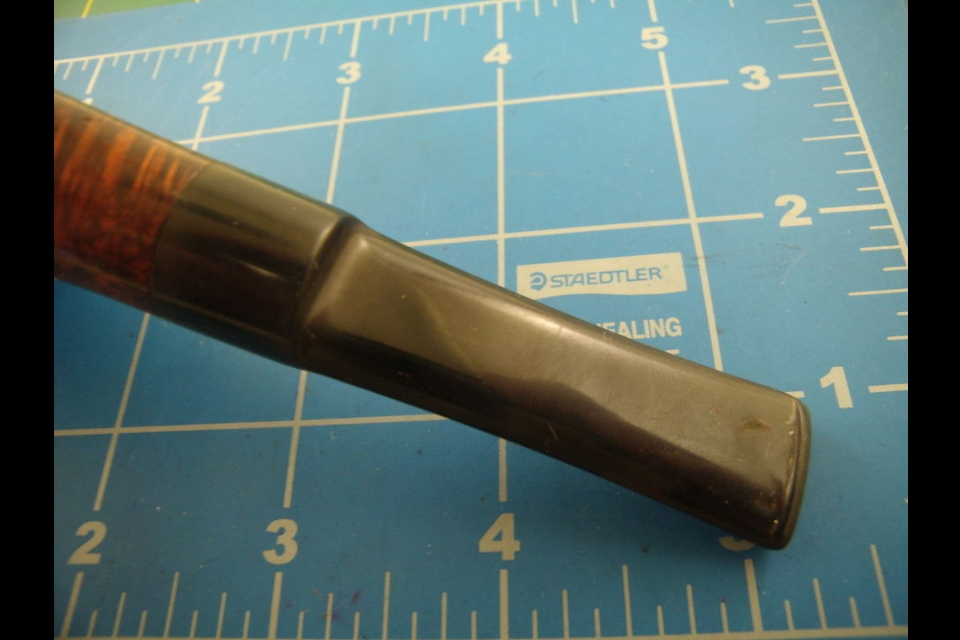 The second is an apple that caught my eye on one of his email updates. It was made later than the first one. The stem work is definitely improved. Note that the stem is thinner than the one above but there is a definite crown on the stem. It is almost oval in shape from an end view with thin edges and a rise/crown toward the middle of the stem. There is also an abrupt drop from the stem to the button area. The angle is quite sharp. He has also thinned down the button and made it more comfortable. The stem work is getting better and the feel in the mouth is better but it is still not quite there.