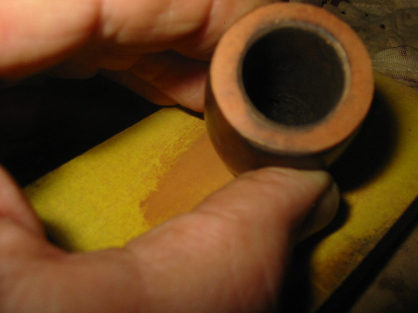 Tony did a masterful job on the inner mechanics of the pipe with drilling that is perfectly executed from the shank and into the bowl – coming out exactly centre in the bottom of the bowl. The airway from the bowl into the mortise is centred. It is smooth in its entrance to the mortise and the mortise itself is also smooth with no rough spot left by drill bit. The bowl itself is U shaped and smooth from sides to bottom. The air way enters the bowl and is smooth and clean. There was no bowl treatment or coating just a good smooth briar.