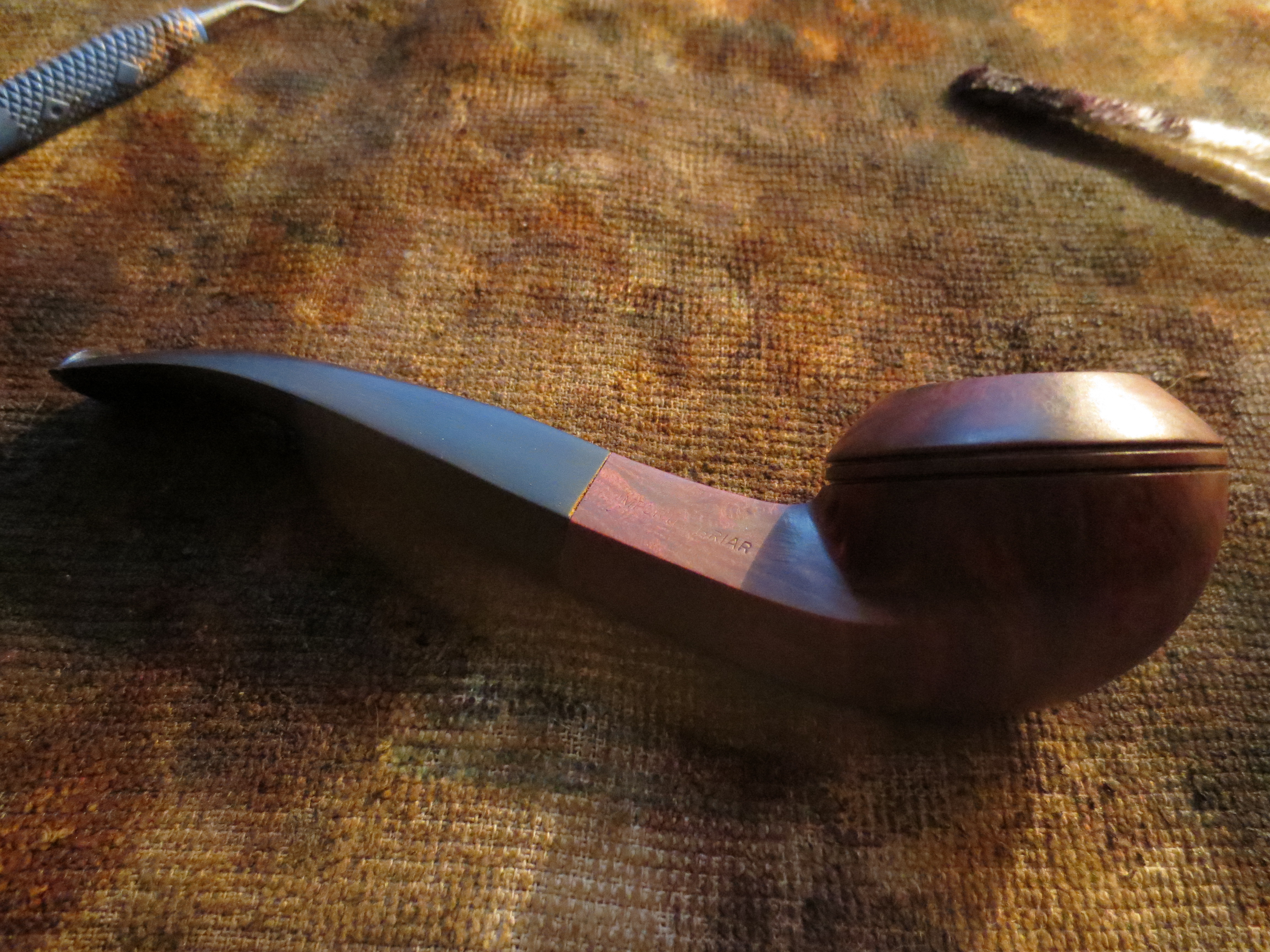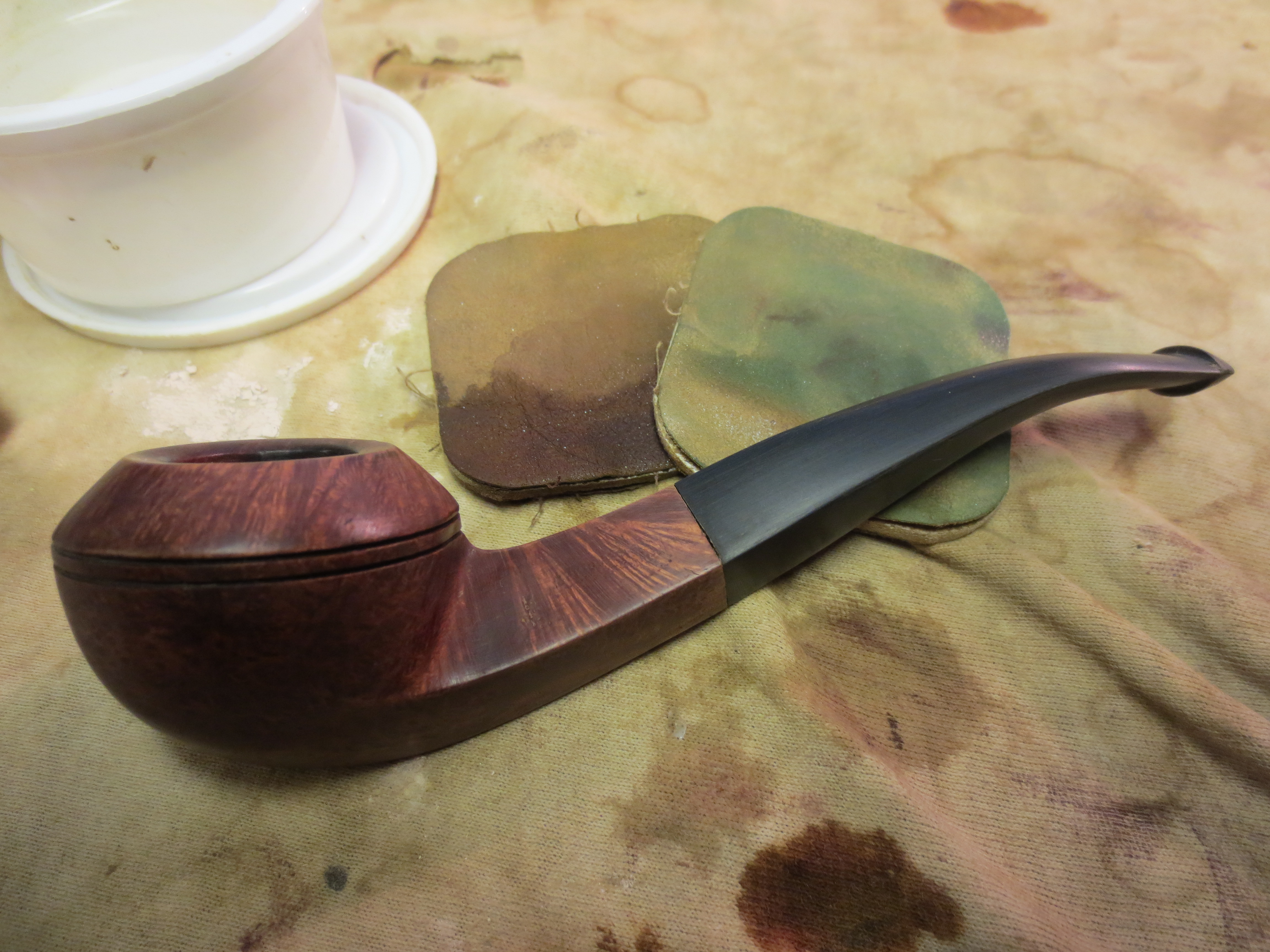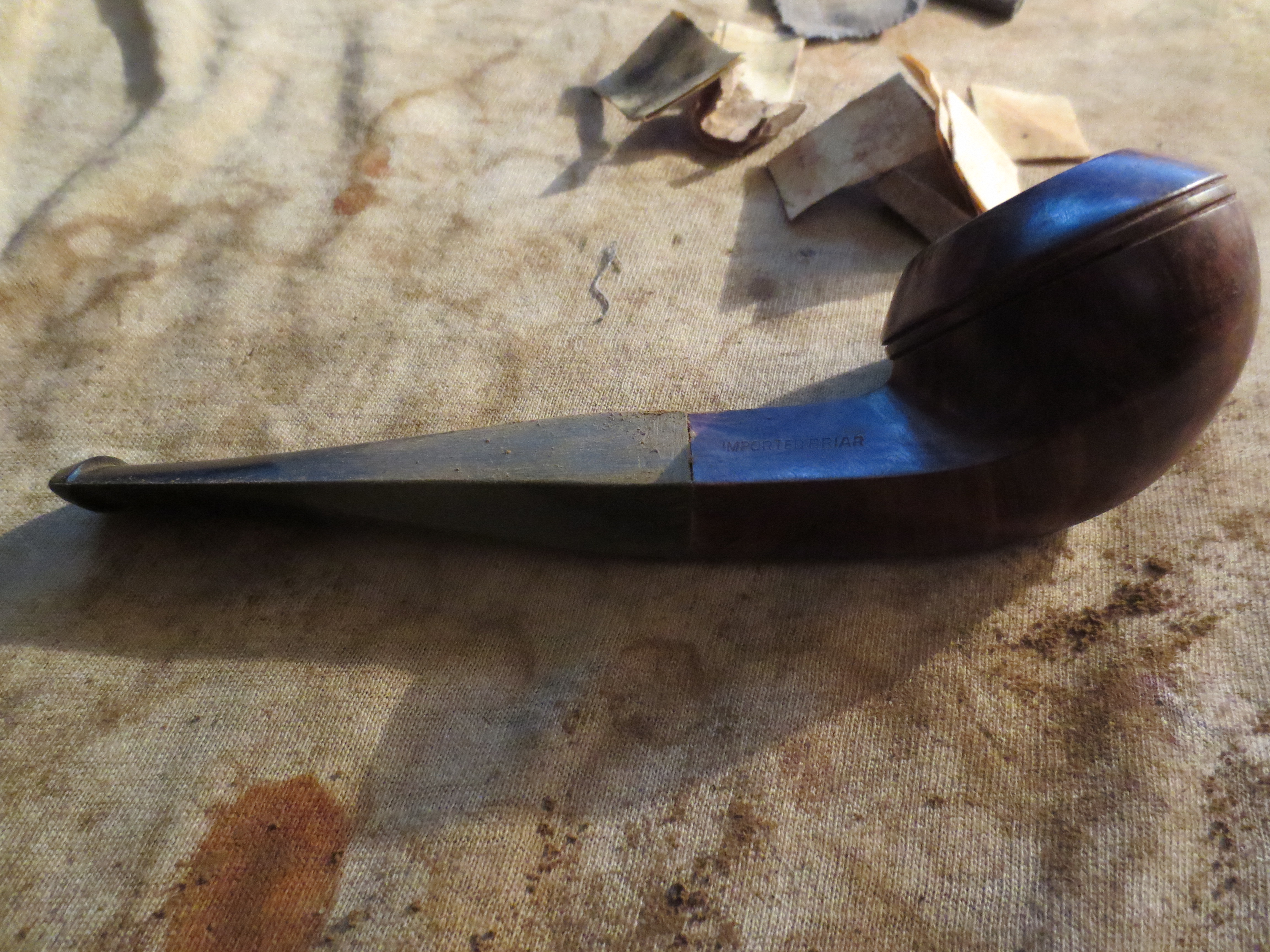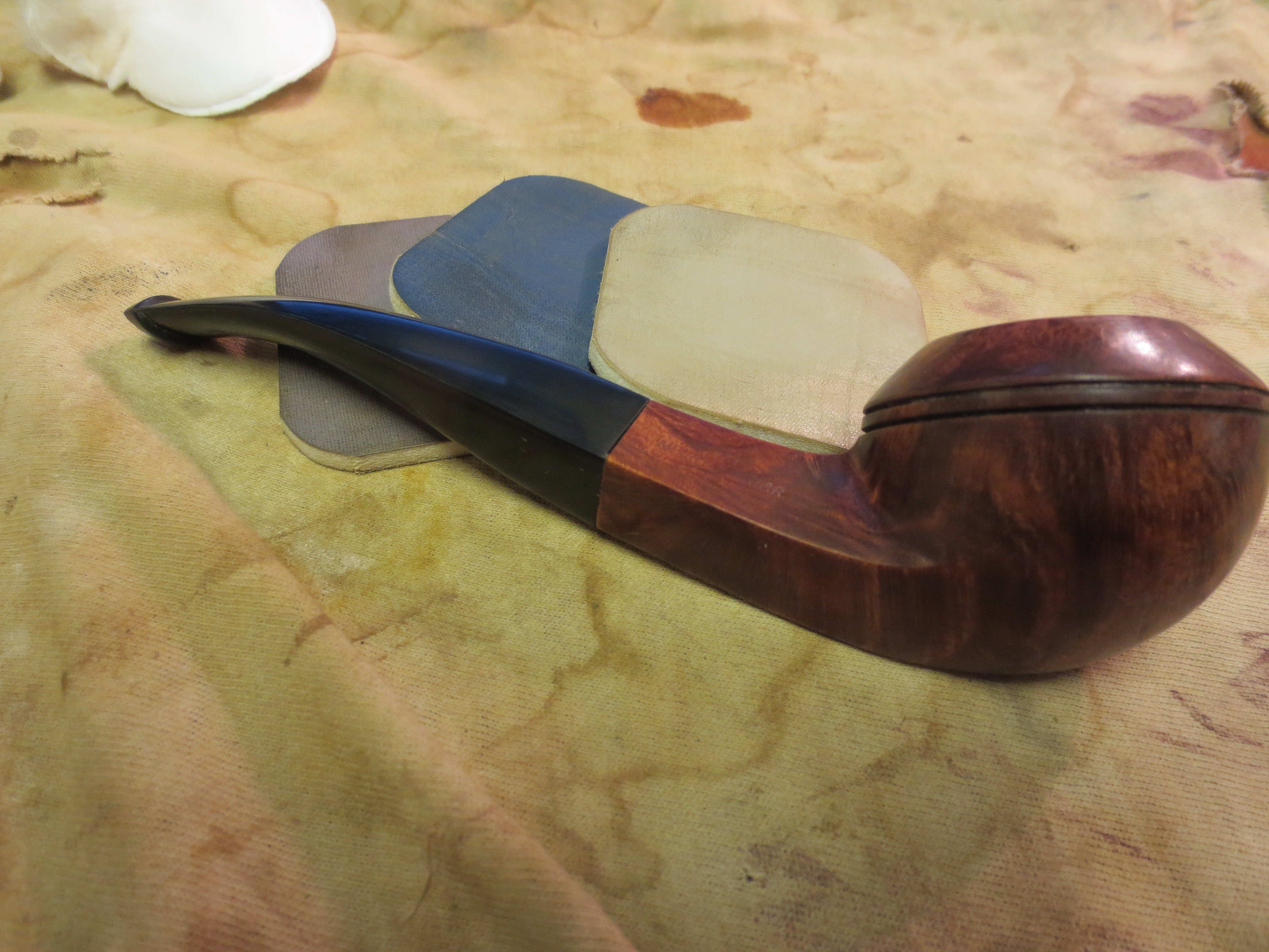 I buffed the pipe with White Diamond and then gave it multiple coats of carnauba wax to finish it. The finish came out nicely in my opinion and the feel of the pipe in the hand was perfect. I had to load a bowl of tobacco and give it a new inaugural smoke. I chose to load it with some 2009 Barclay-Rex Barclay Slice. I packed the bowl, picked up a tamper and lighter and headed outside into the yard with my spaniel. While he ran around and chased sticks and chewed them I relaxed and had a bowl. It is a great smoking little pipe. It is comfortable in the mouth and has an open draught. I like it. Now I need to decide whether to keep it or pass it on.