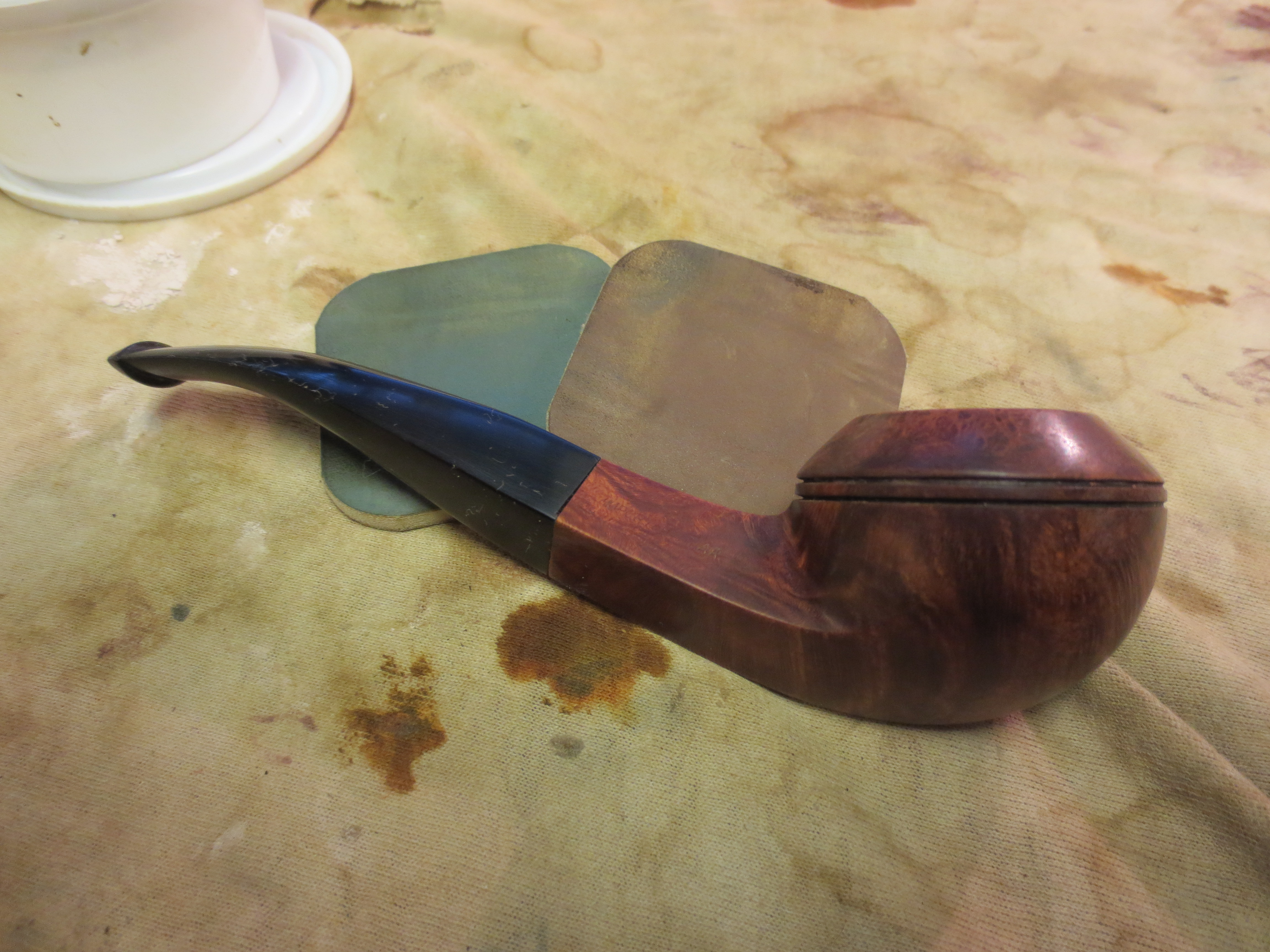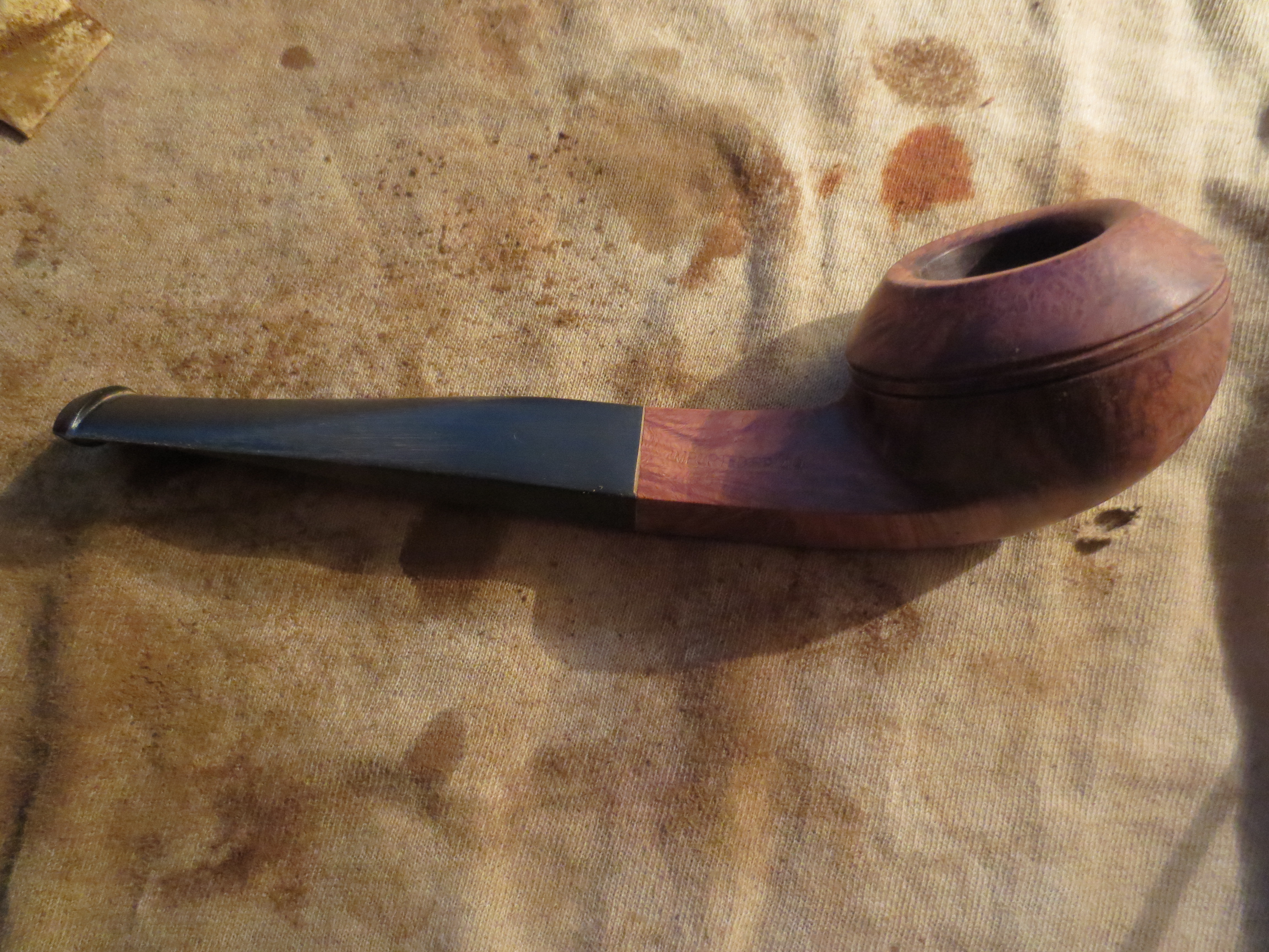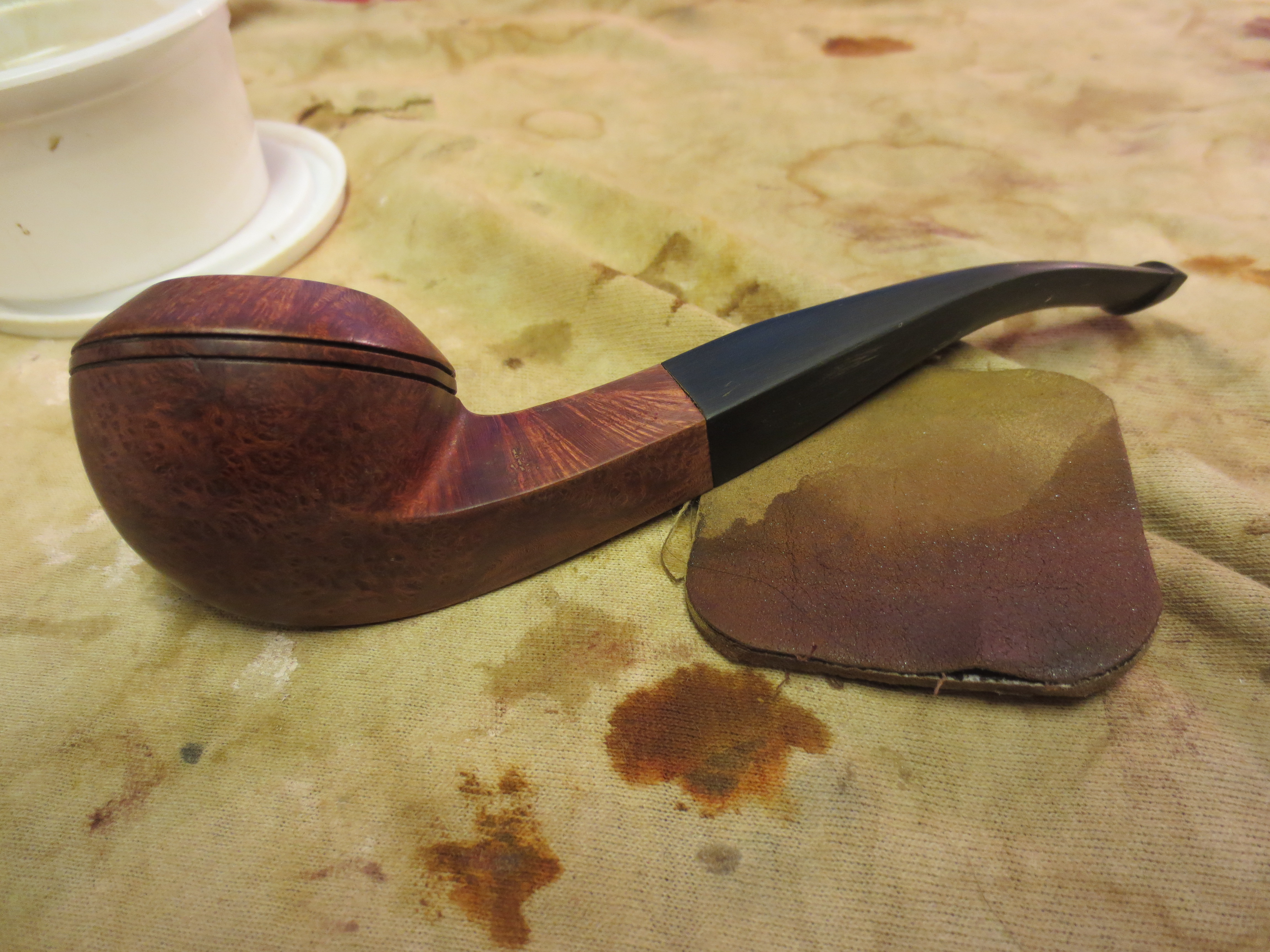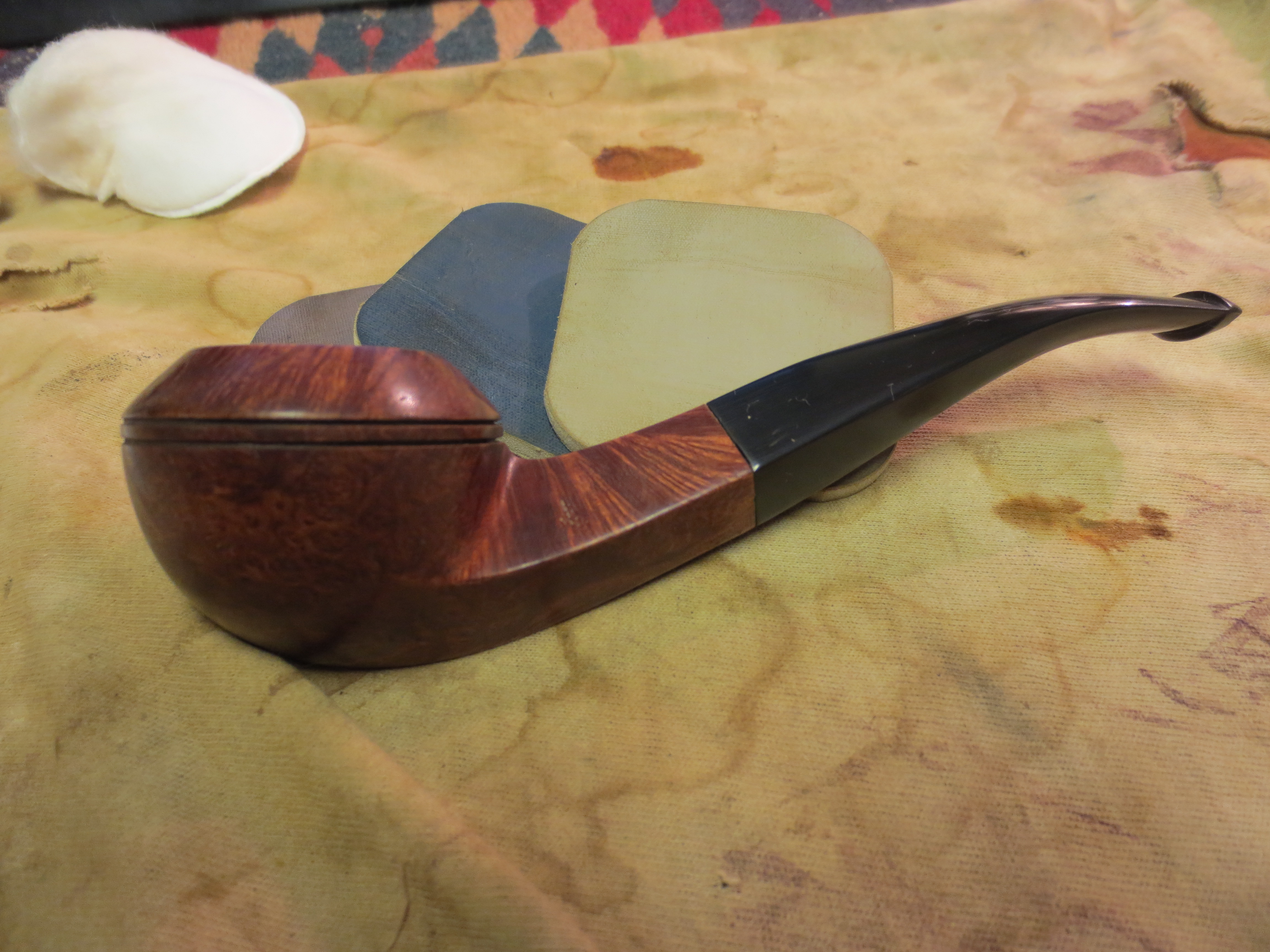 I buffed the pipe with White Diamond and then gave it multiple coats of carnauba wax to finish it. The finish came out nicely in my opinion and the feel of the pipe in the hand was perfect. I had to load a bowl of tobacco and give it a new inaugural smoke. I chose to load it with some 2009 Barclay-Rex Barclay Slice. I packed the bowl, picked up a tamper and lighter and headed outside into the yard with my spaniel. While he ran around and chased sticks and chewed them I relaxed and had a bowl. It is a great smoking little pipe. It is comfortable in the mouth and has an open draught. I like it. Now I need to decide whether to keep it or pass it on.