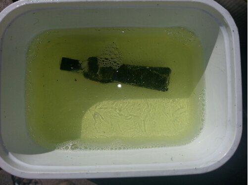 I then use an old butter box half filled with 50% bleach and 50% water and drop the stem in the mixture for 30 minutes.