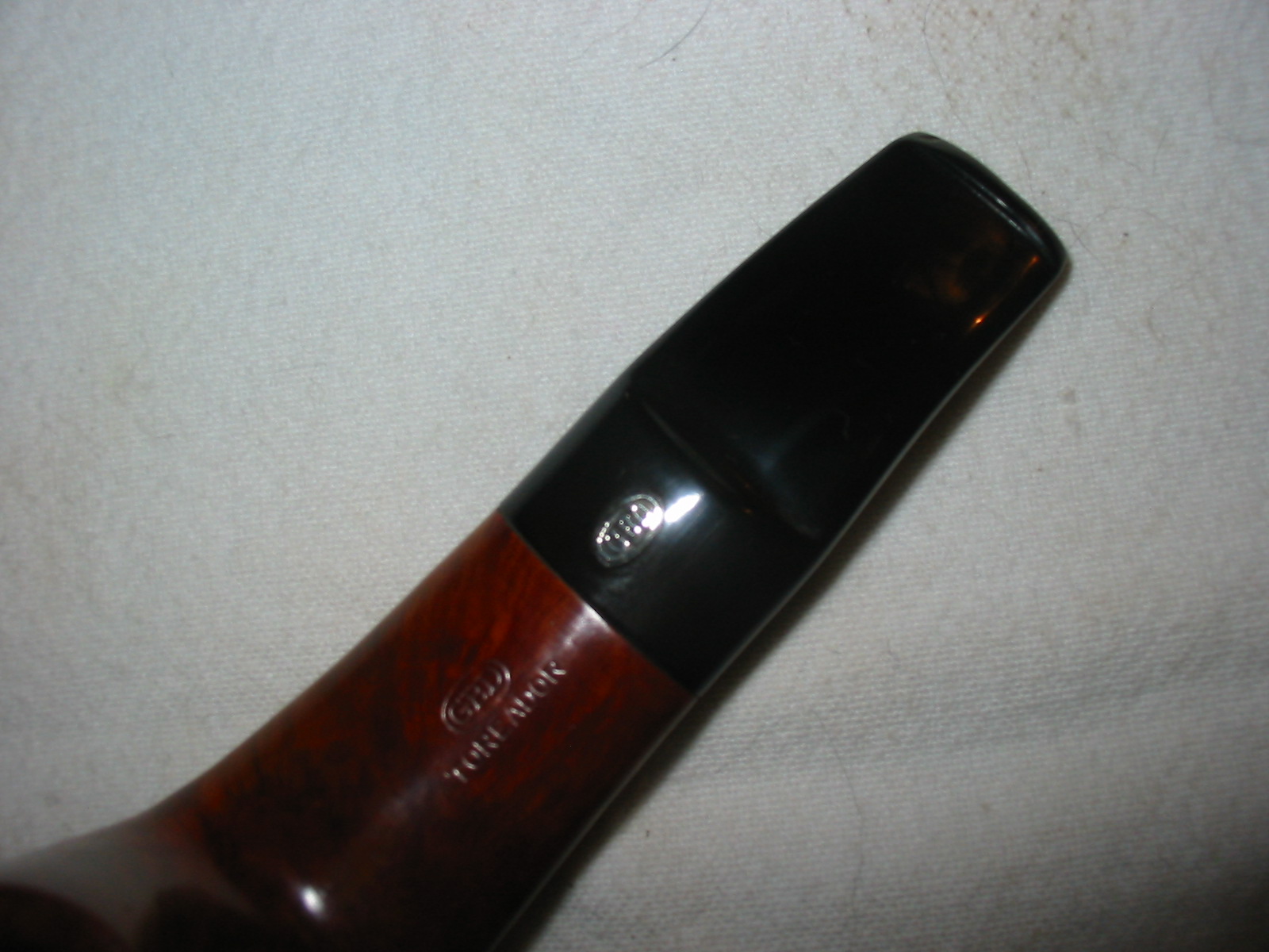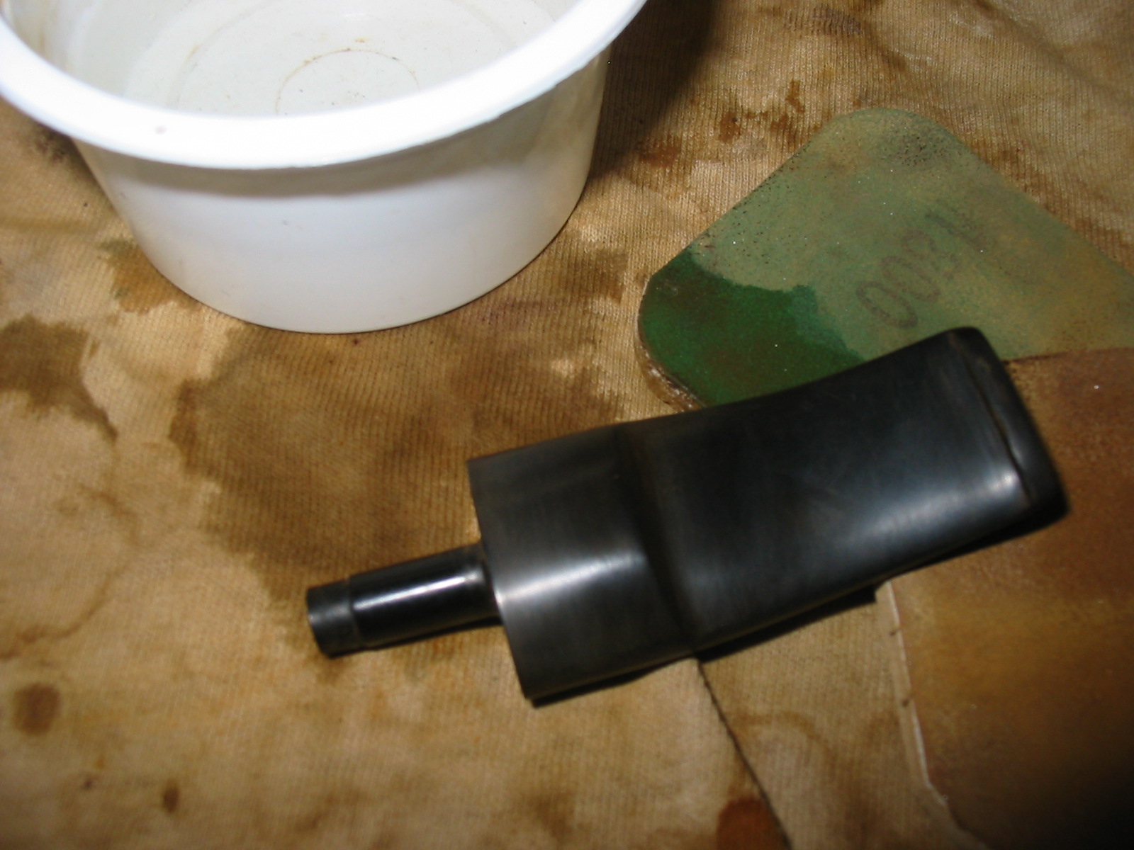 I wet sanded the stem with 1500 and 1800 grit micromesh sanding pads to remove the scratches left by the other sandpapers. I wet the sanding pads and then sanded the stem, wiped off the grime and water and resanded it until the majority of the scratches were removed from the surface of the stem. I worked the pads around the GBD rondel so as not to sand it and remove surface or stain in the metal. The next two photos show the stem after sanding with these two grits.