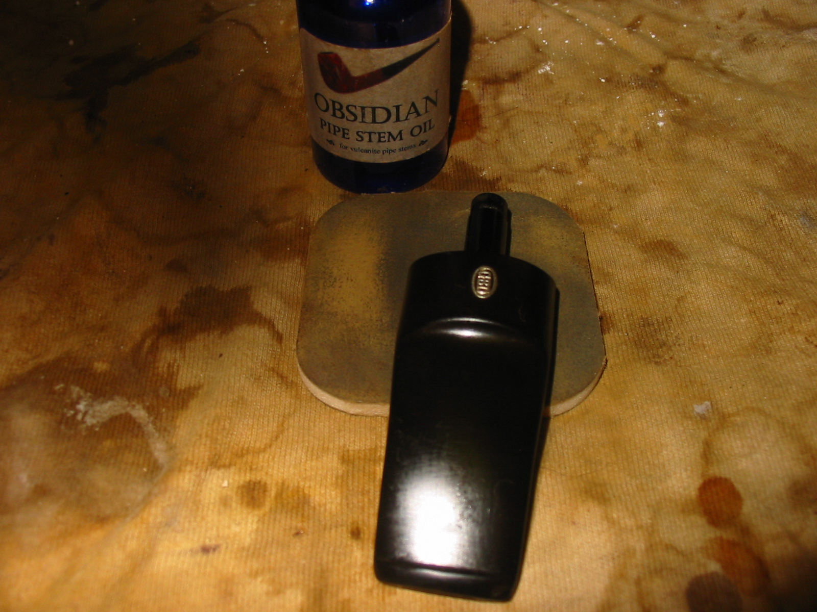 I set the stem aside to dry and worked on the bowl again. I wiped it down a final time with acetone on a cotton pad. I chose to stain it with a dark brown aniline stain, thinned 2:1 with isopropyl alcohol. I did not want to darken the colour of the pipe but merely bring it back to its original colour as determined from several other smooth GBD pipes of this era. I gave it a coat of stain and flamed it with a lighter. I reapplied the stain and also flamed it a second time. The next series of four photos show the pipe after it has been stain. I wiped it down with a soft cloth. It had not been buffed at this point.