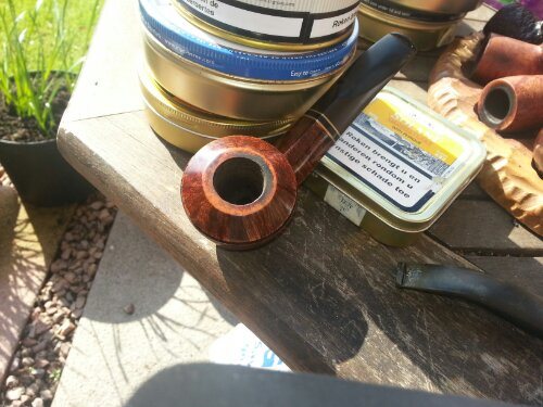 I picked this old-timer up at an antique mall in Edmonton, Alberta two weeks ago. It was part of the threesome of pipes and tobacco and pipe cleaners that I purchased at the mall that day. In the photo below it is the pipe on the bottom of the picture.
