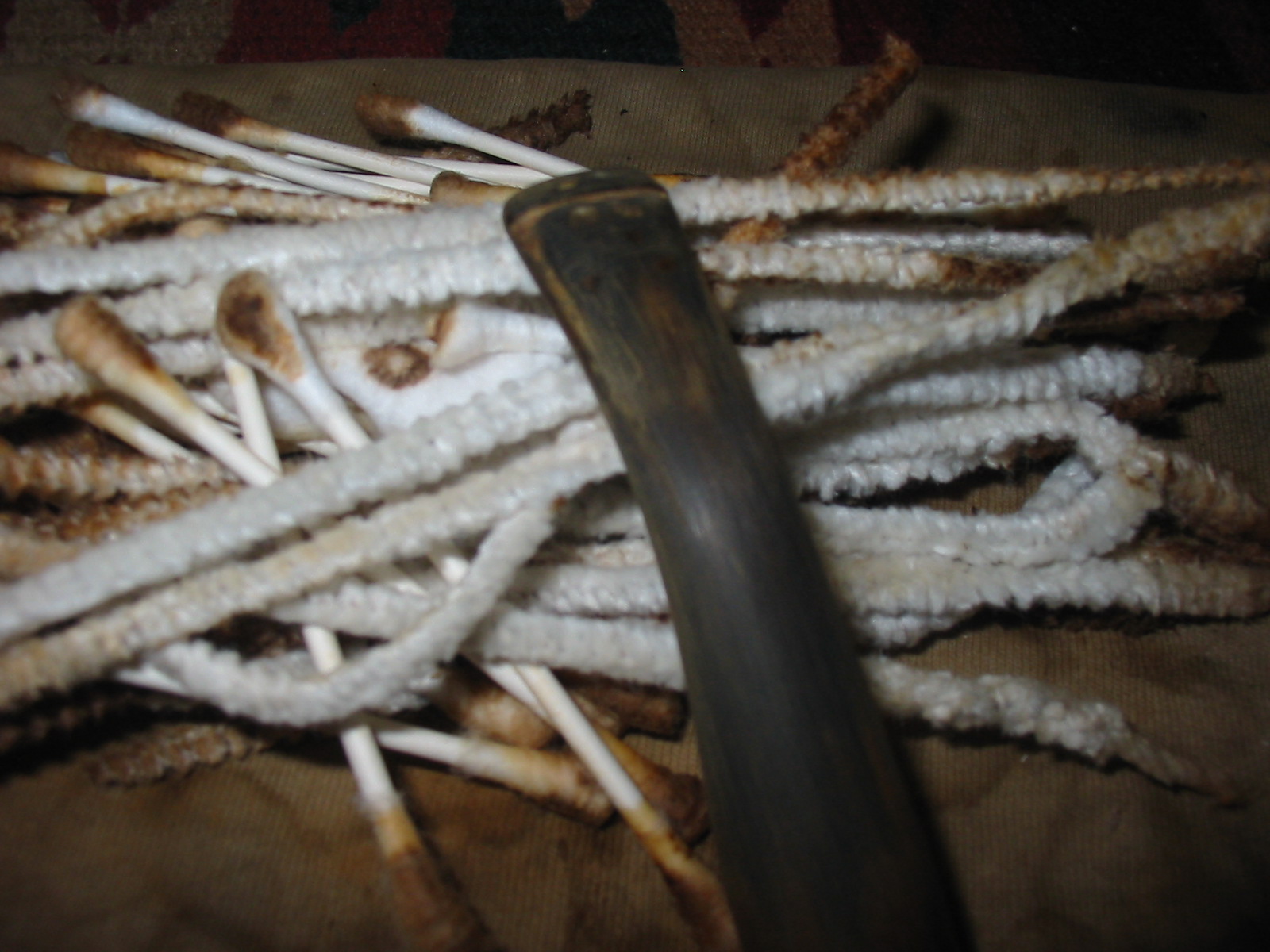 The stem took a bit of work as it was plugged with grit and tar. I used a dental pick to clean out the slot. To the right of the stem in the photo is some of tar and grit I picked out of the slot. I used a straightened end of the pick to clean deeply in the slot. I then used pipe cleaners soaked in Everclear and pushed them through the blockage. I also opened the slot with needle files to facilitate easy access with pipe cleaners. The slot was very narrow which also made the blockage hard to get at.