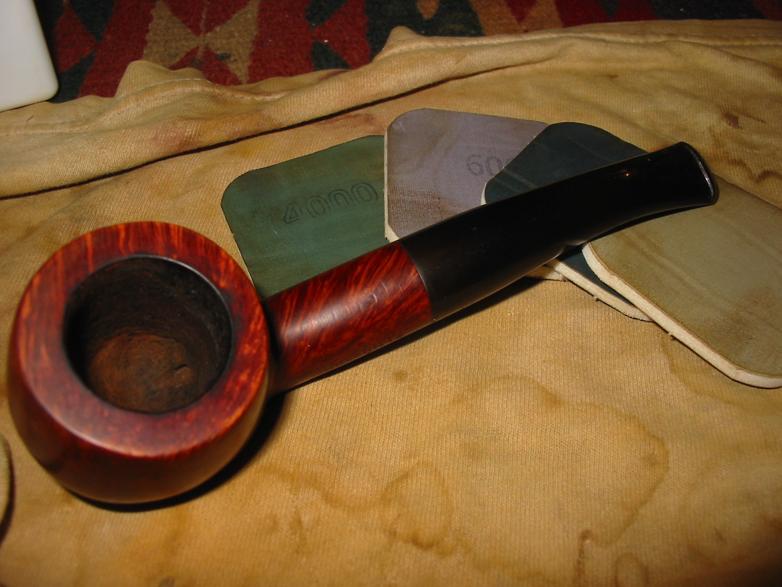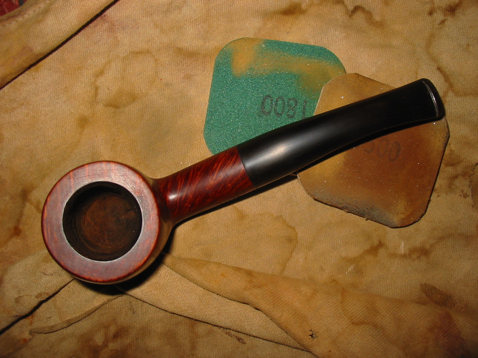 I sanded the stem with micromesh sanding pads from 1500-12,000 grit to finish removing the oxidation and the scratches left behind by the various sandpapers I used. The next series of photos show the progress of the shine after each group of sanding pads.