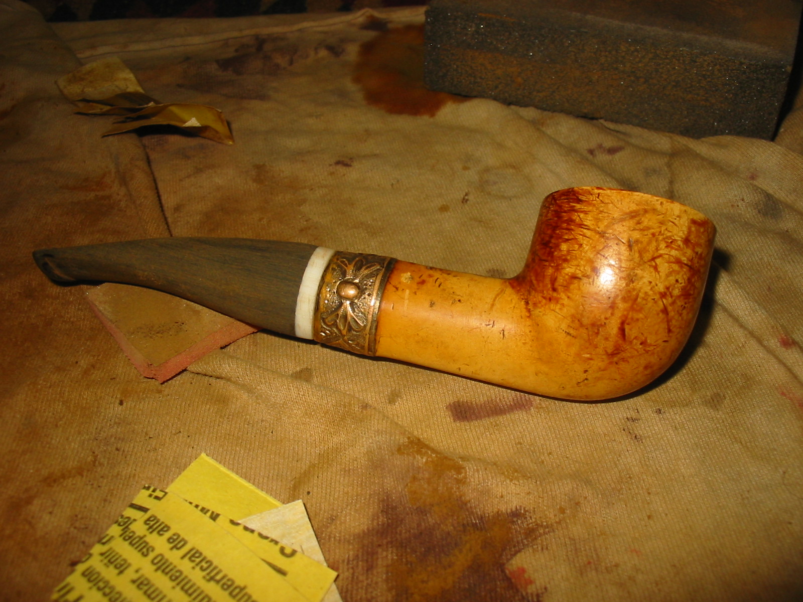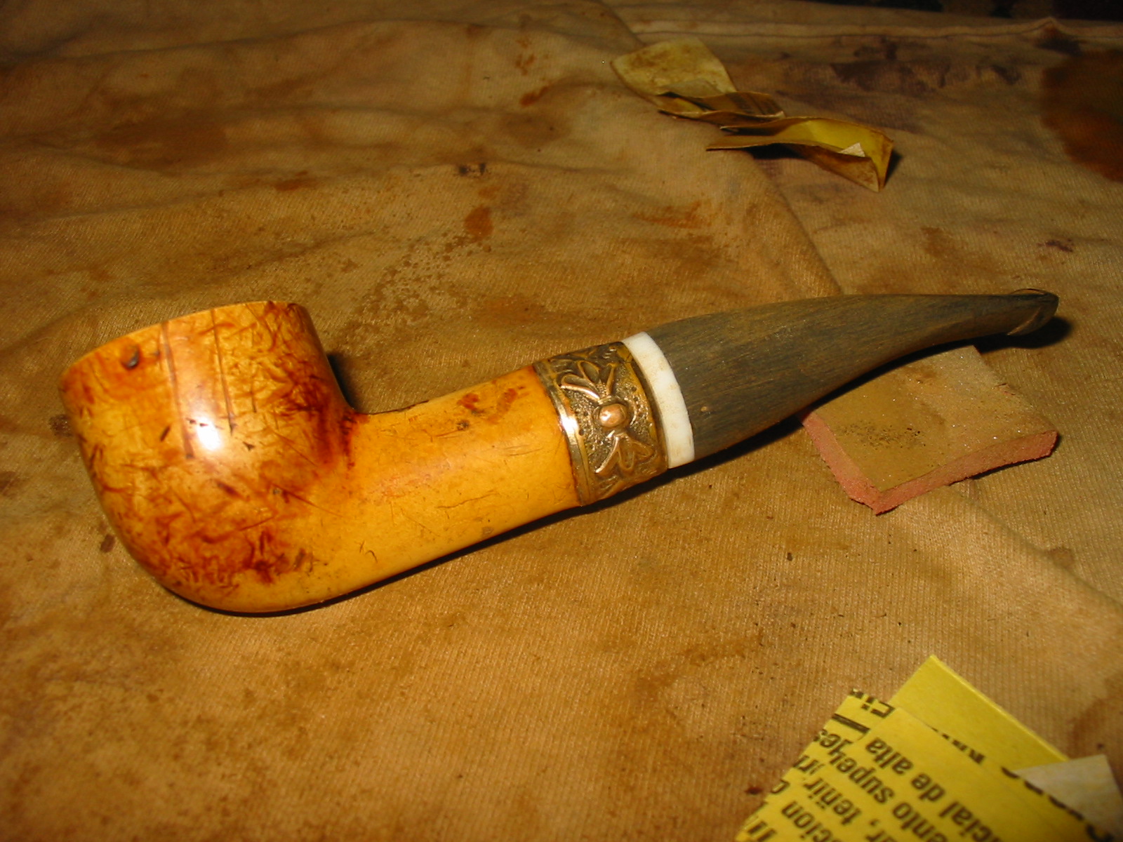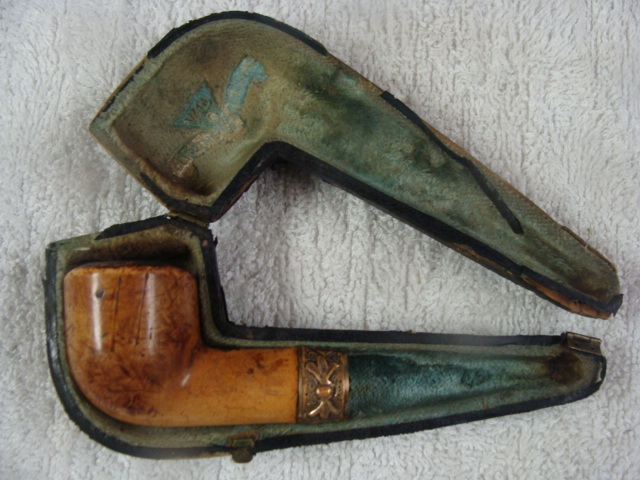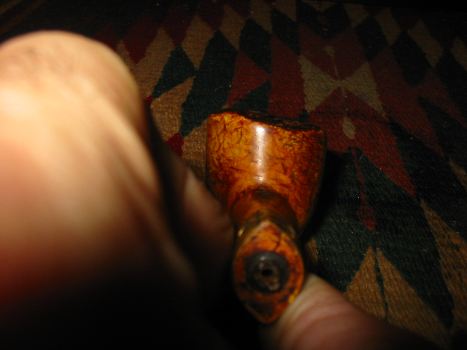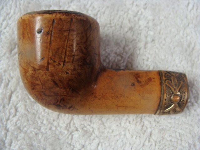 I saw this old Meerschaum pipe bowl on Ebay and decided to put a low bid on it. I was not surprised to have won it and paid for it quickly. The seller packed it very well and shipped it off to Vancouver, Canada. Below are the Ebay photos that caught my attention. I think the thing that intrigued me the most was the vertical oval shank on the pipe. To restem that pipe would be a great challenge – find a stem large enough to work with and shape it until it fit. I thought I had just the stem in my box – a gift from a friend on Pipesmokers Unleashed Forum, Robert.