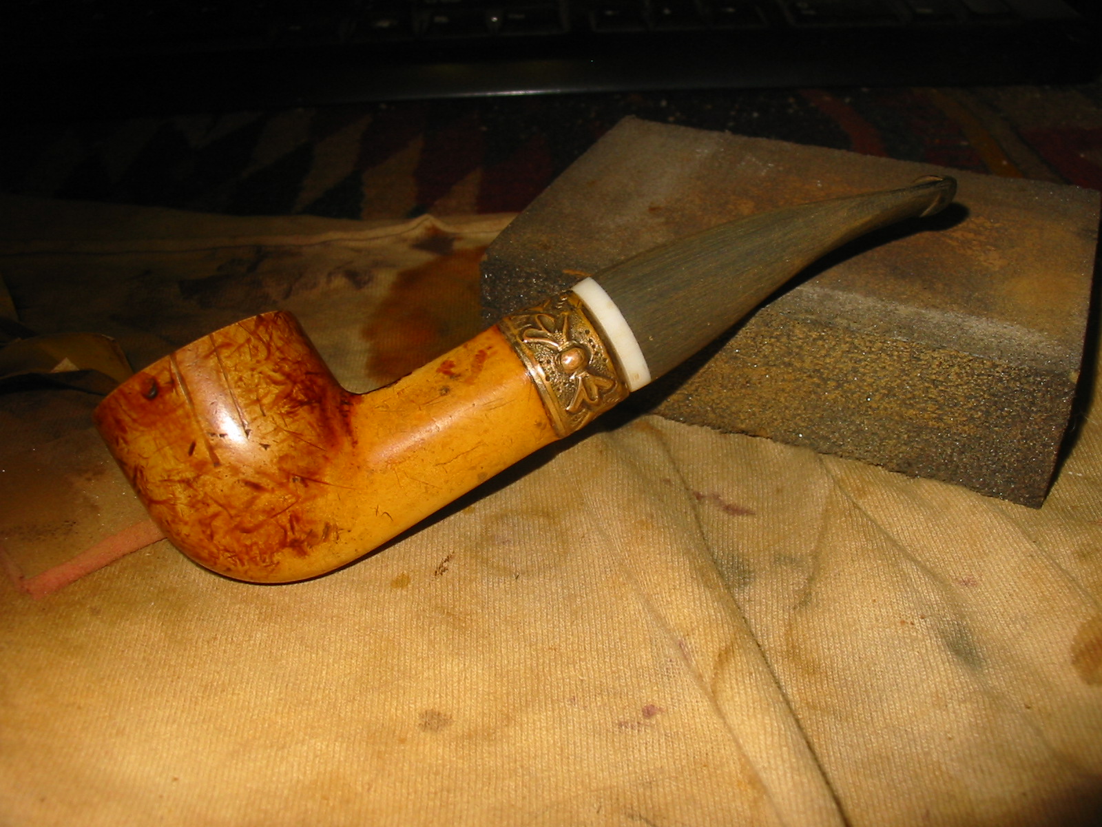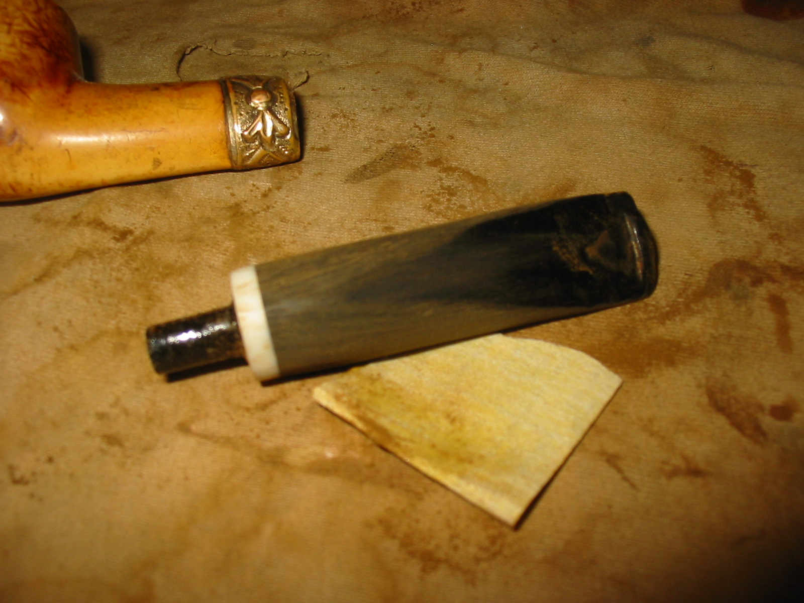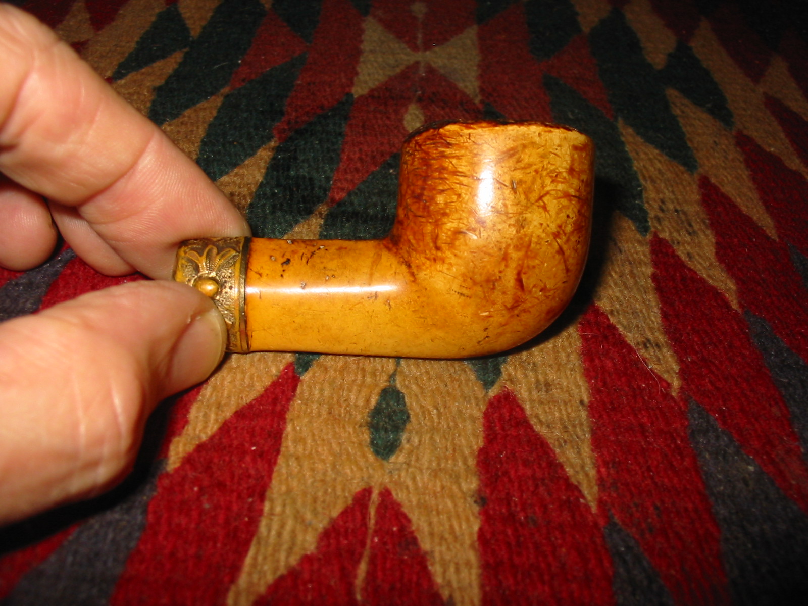 I saw this old Meerschaum pipe bowl on Ebay and decided to put a low bid on it. I was not surprised to have won it and paid for it quickly. The seller packed it very well and shipped it off to Vancouver, Canada. Below are the Ebay photos that caught my attention. I think the thing that intrigued me the most was the vertical oval shank on the pipe. To restem that pipe would be a great challenge – find a stem large enough to work with and shape it until it fit. I thought I had just the stem in my box – a gift from a friend on Pipesmokers Unleashed Forum, Robert.