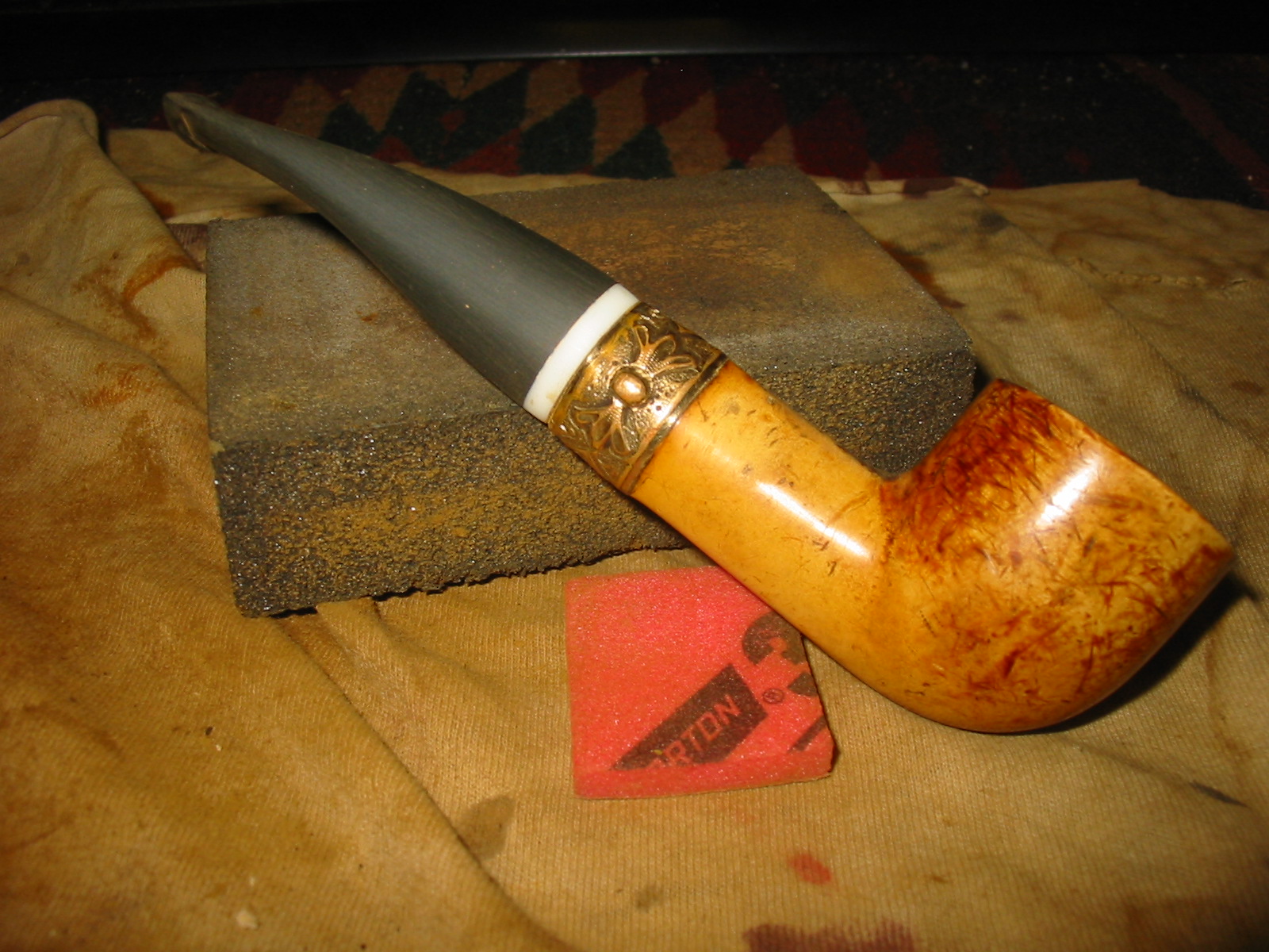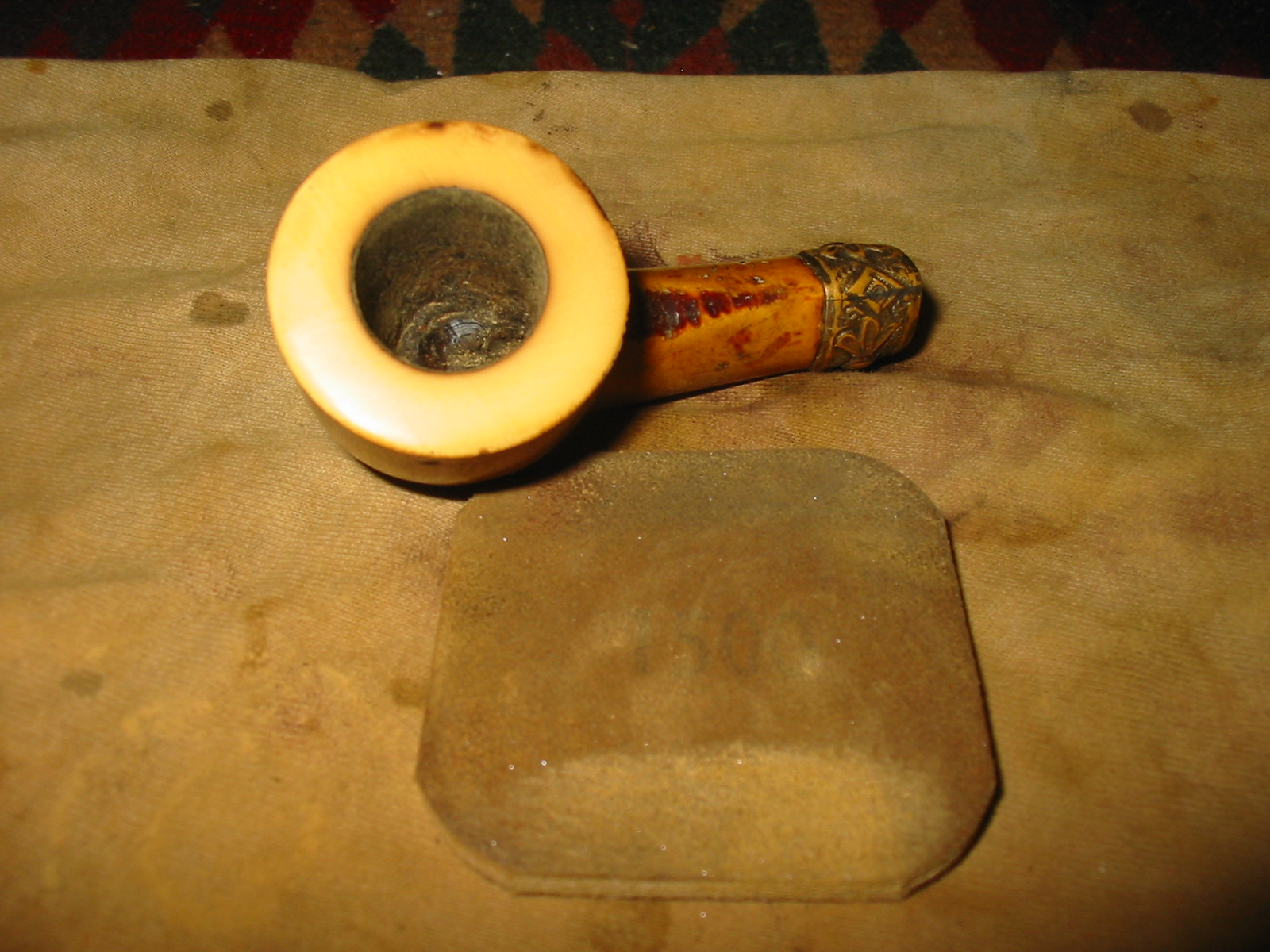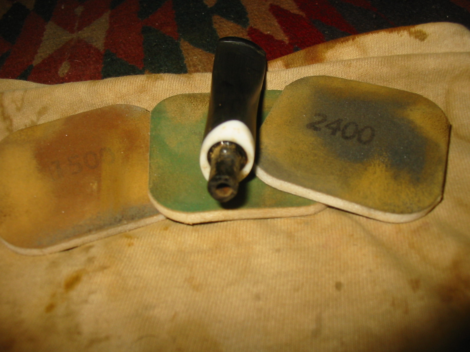When I had finished the sanding, I used micromesh sanding pads to sand the top smooth once again and remove the scratches from the coarse sanding block. The micromesh sanding pads from 1500 – 12,000 grit bring a shine back to the surface of the meer and prepare it for rewaxing once the pipe is finished.
