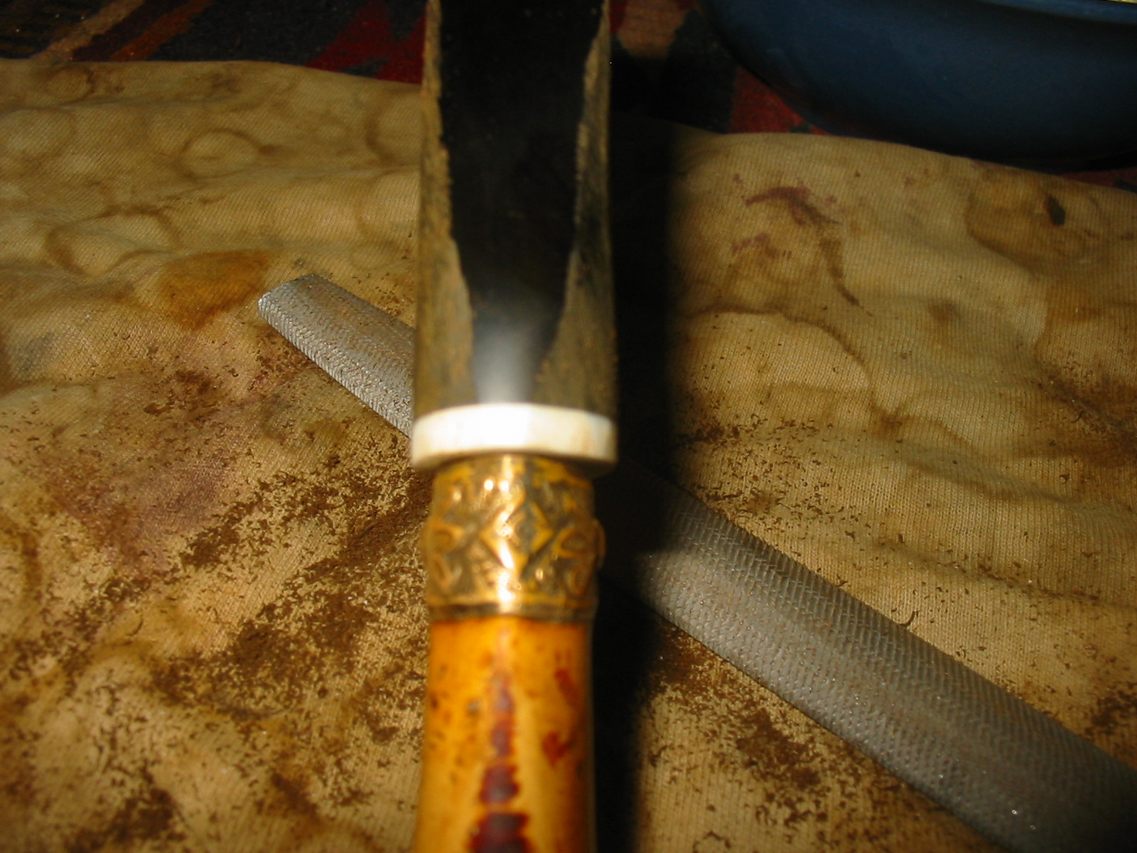 I sanded the initial excess vulcanite off the diameter of the shank with the sanding drum on the Dremel. Once I had removed a large portion I took it back to the work table and used a rasp to continue to shape and reduce the stem to the right proportions. The next series of eight photos shows the effectiveness of the rasp in shaping the stem. (In the midst of the shaping my daughters brought down a bowl of popcorn for a snack while I worked – that appears in several of the photos.)