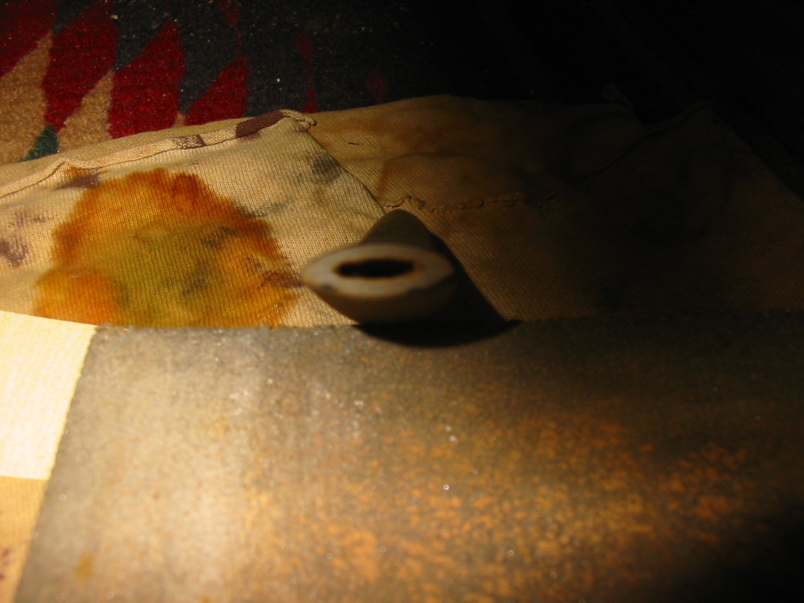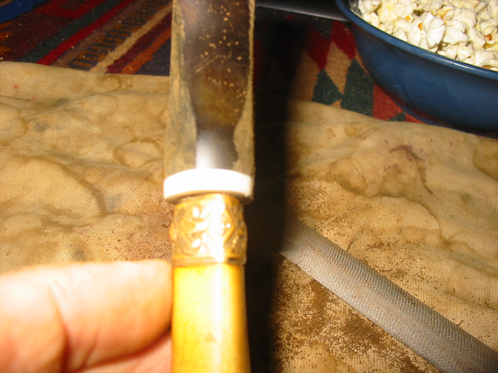 While working on the stem I decided to open the button to make it simpler to insert a pipe cleaner. I used needle files to make the slot larger. The second photo shows the opened slot in the button. I sanded the inside of the slot with a folded piece of sandpaper to smooth the surface and polish the slot.