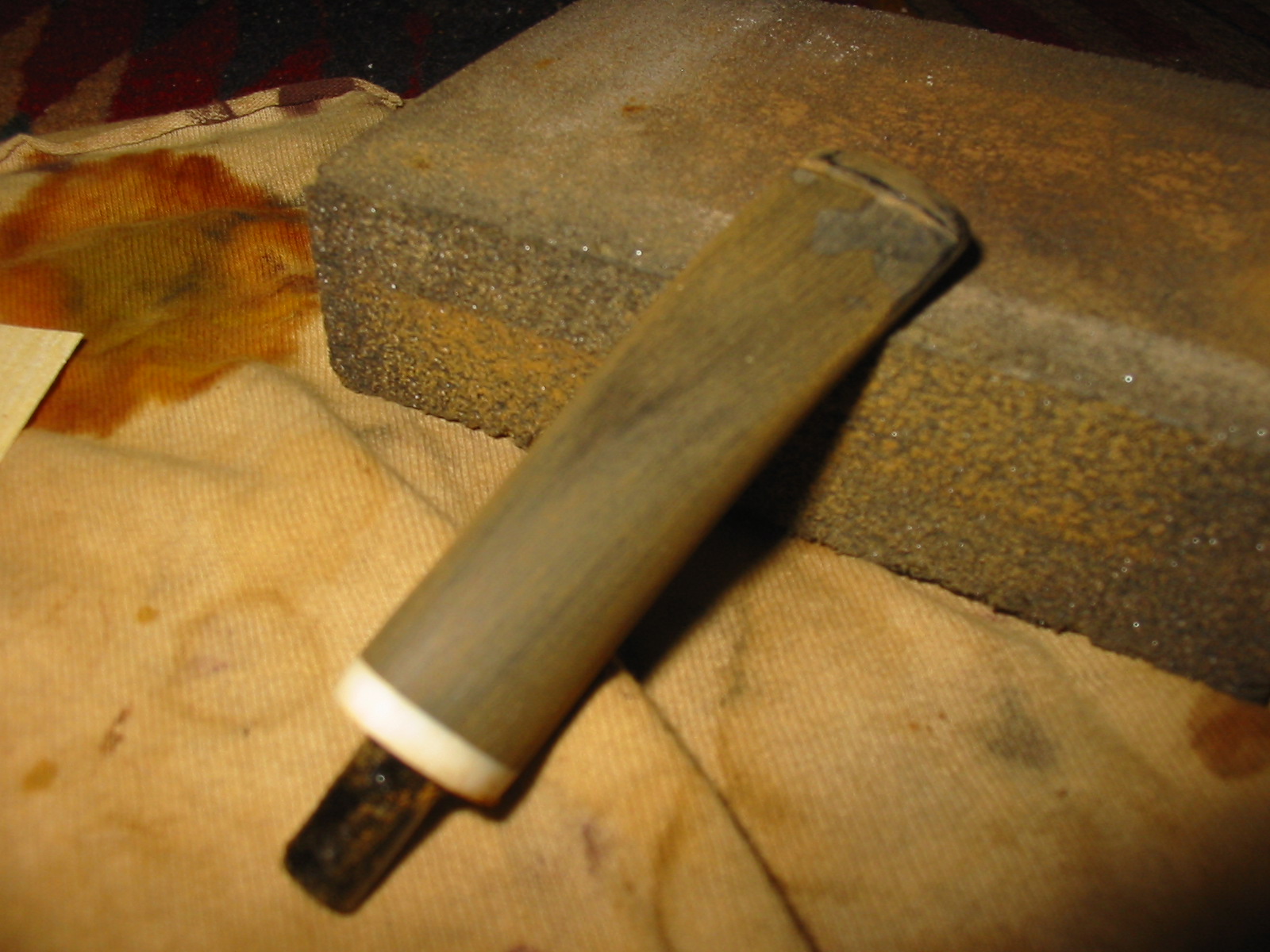 This morning I sanded the stem with 220 grit sandpaper and also sanded the superglue patch on the underside of the stem. The next four photos show the stem as it begins to take shape and the repaired spot on the underside of the stem. The oval is coming along nicely but there was still a lot of excess material that still needed to be removed.