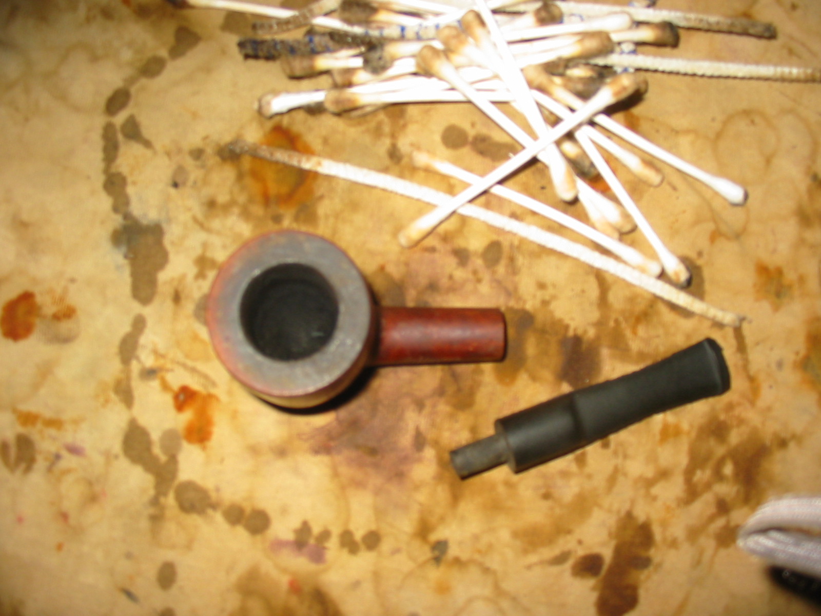I cleaned the inside of the shank and bowl with cotton swabs and pipe cleaners dipped in Everclear. The alcohol removed the grime from the shank. I reamed the bowl with a PipNet reamer. The bowl is quite large – so I used the largest cutting head on the reamer. I wiped down the tars on the rim with alcohol wetted cotton pads to clean off the buildup as much as possible.