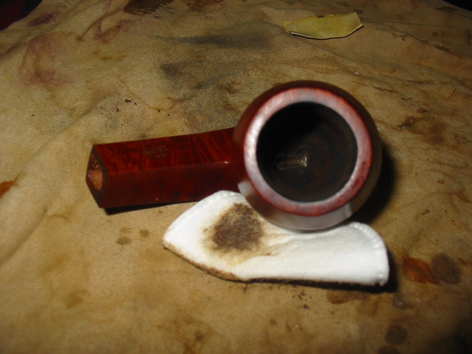 When I returned in the evening, the patches were dry and the pipe was ready to be worked on. I reamed the bowl with the PipNet reamer. On this particular pipe the bowl was conical so it took three different cutting heads on the T handle to ream the bowl to the bottom. With down I cleaned the bowl, shank and stem with Everclear, pipe cleaners and cotton swabs. I wanted the pipe cleaned out before I worked on the exterior.