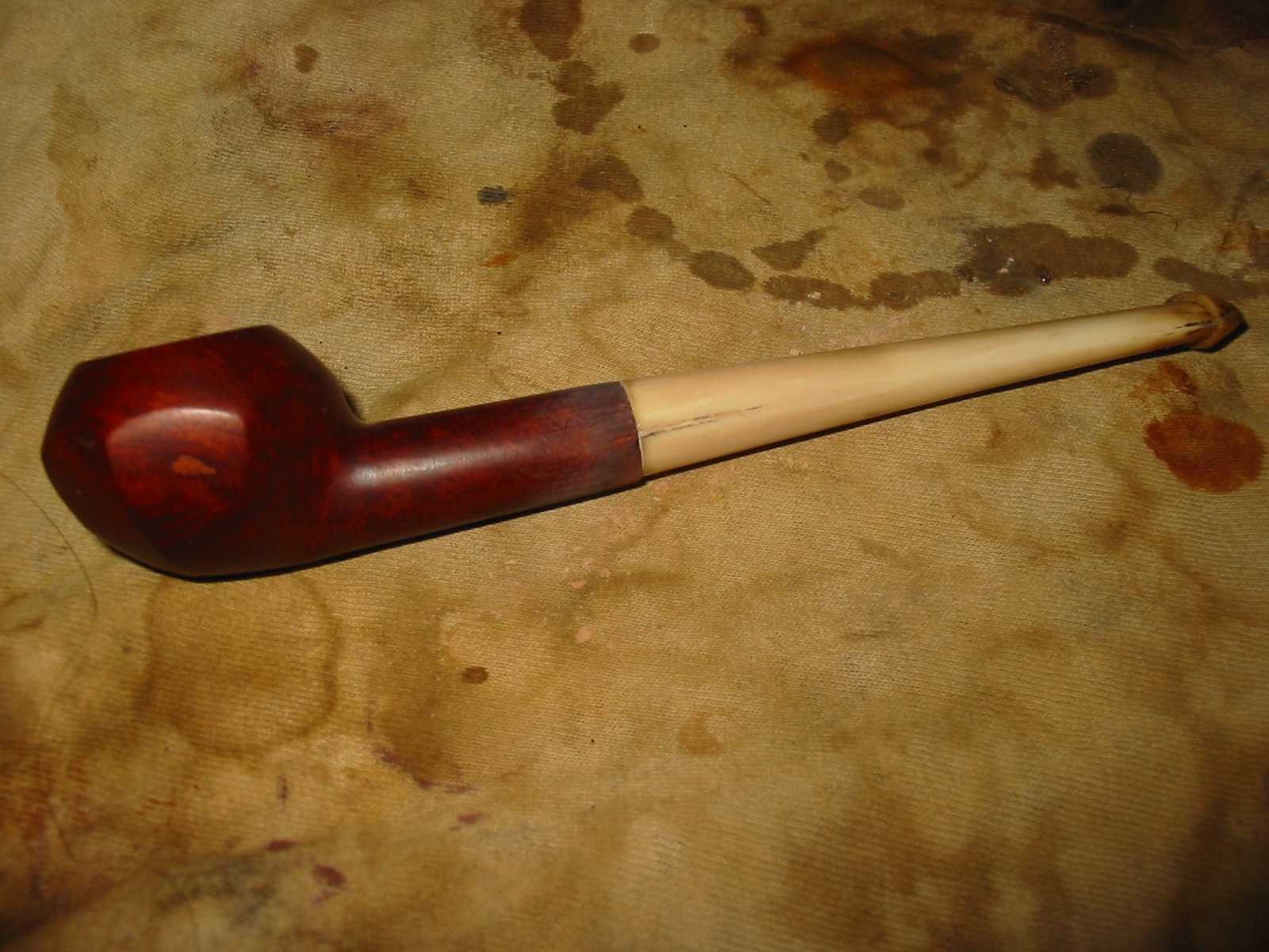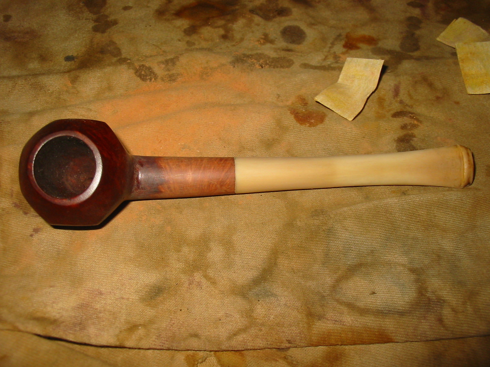 I am scraping the bottom of the box for pipes to refurbish. It is clear that I am going to have to go on the hunt again soon. At the bottom of the box I have a few small/tiny pipe bowls that have come to me from a variety of sources. I believe this little one came from Mark Domingues as well. It is unsmoked and stemless. The bowl was in pretty fair shape though the finish coat was varnish of some sort. The stain was spotty under the varnish coat. There was one dominant fill on the left side of the bowl on one of the panels. The drilling is a bit of centre in the bottom of the bowl – slightly to the left of centre. The drilling was wide open and the draught on the bowl was very good. The bowl did not have a ring around the top before the bevel to the rim. It was a smooth transition. I have had several of these older Rhodesian and Bulldogs in the past and they generally had horn stems. This one did not have any stamping on it so I have no idea as to the maker. There was also no stem present. I had a smaller nylon stem in my box of stems that took very little work on the tenon to make for a snug fit in the shank.